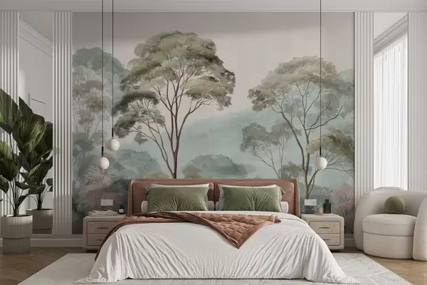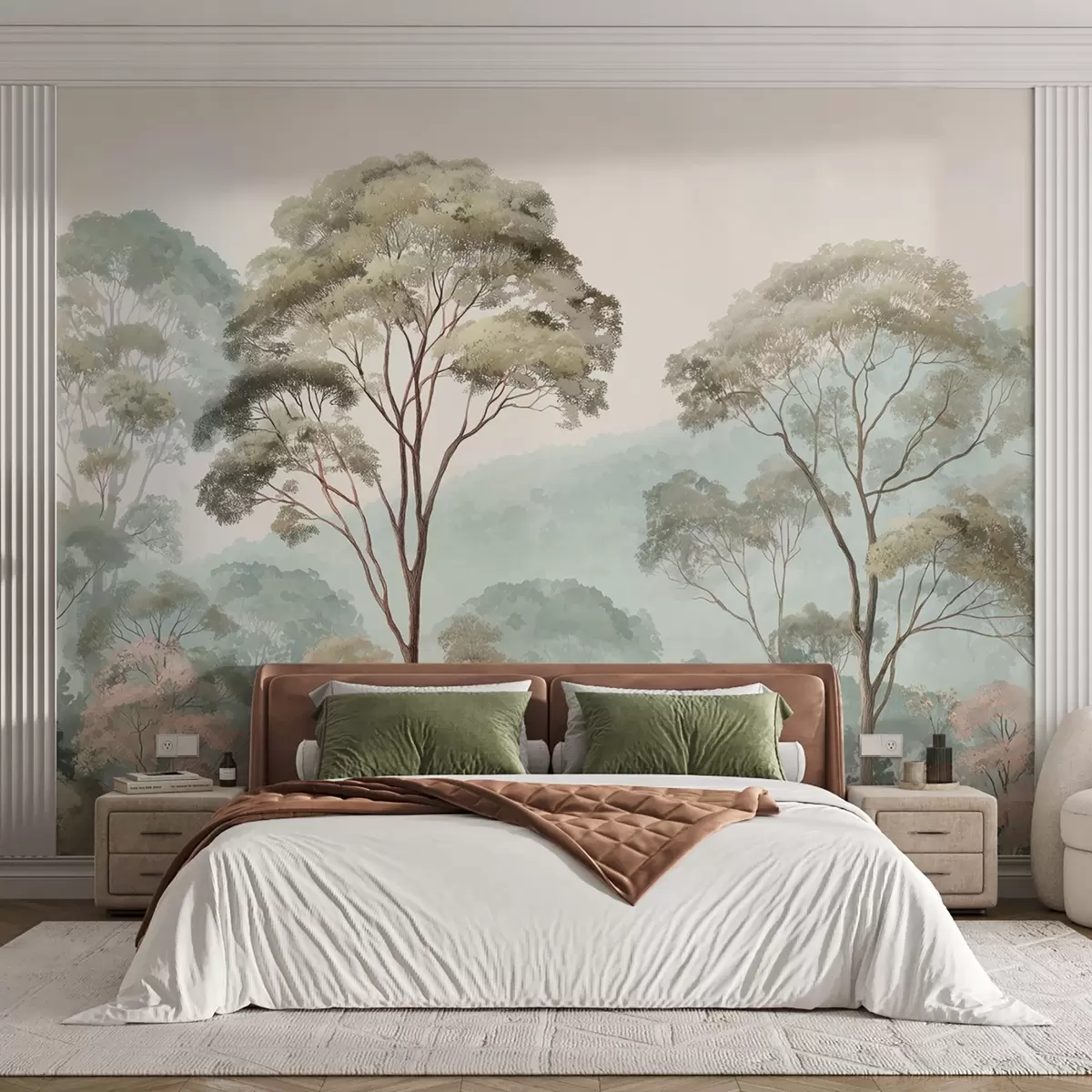 Misty morning in the forest in watercolor style - Wall mural (No. w09405)