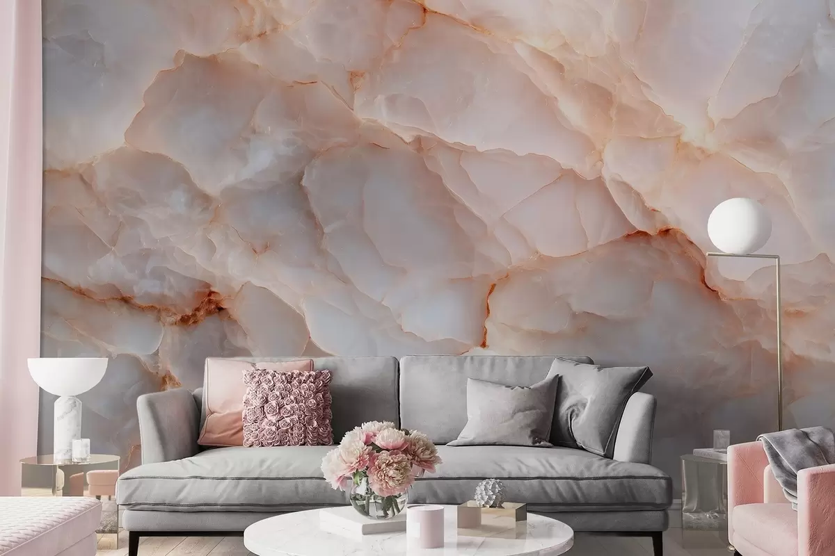 Luxurious imitation of marble in beige-gray tones with a shimmering effect - Wall mural (No. w09412)