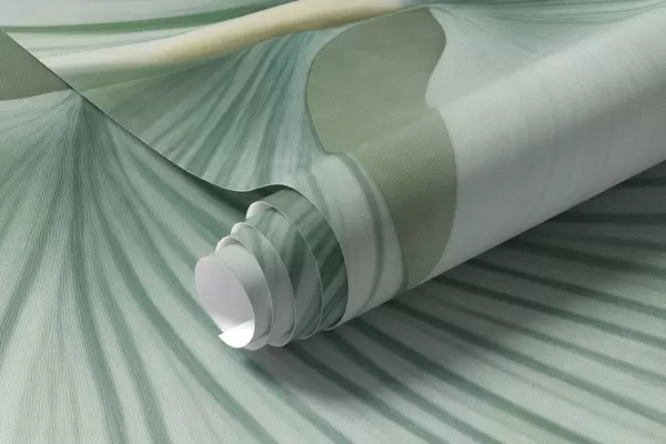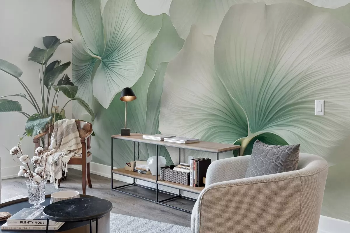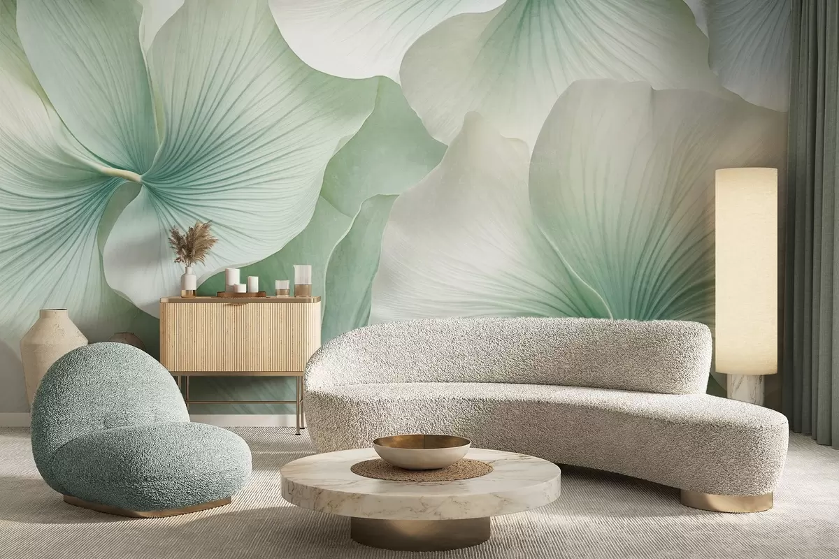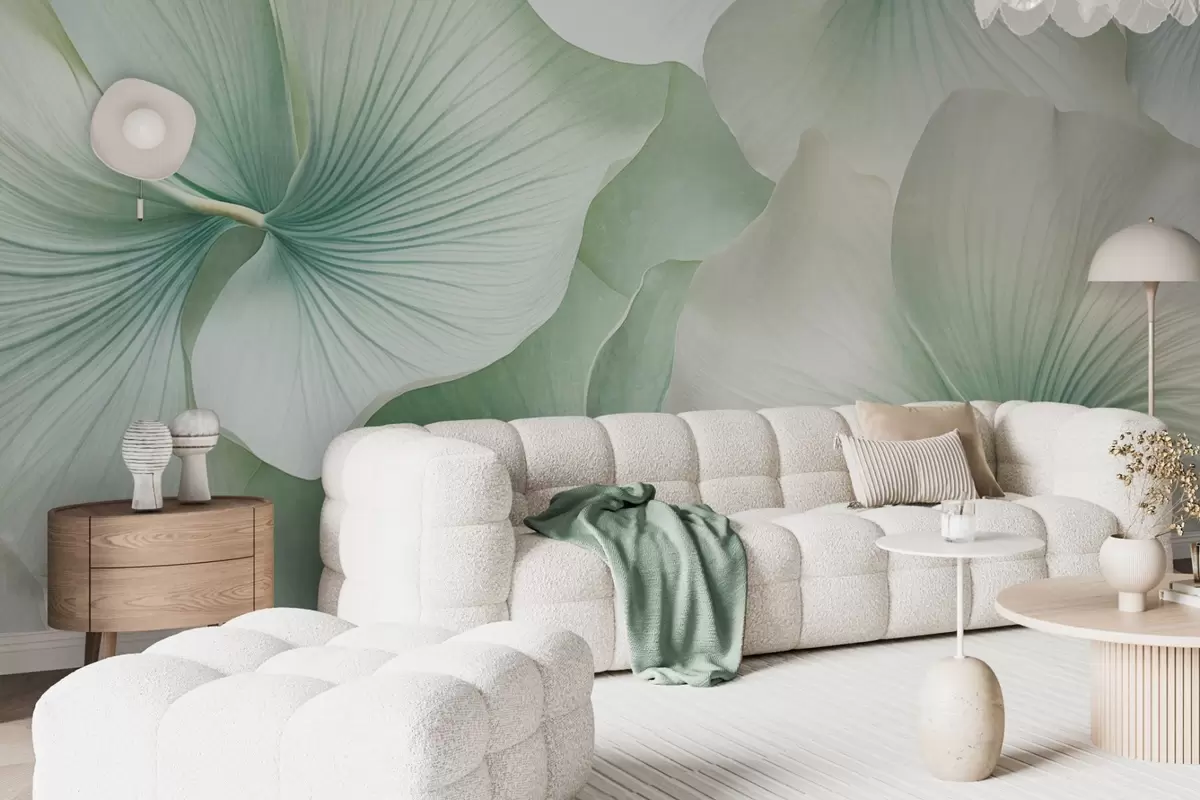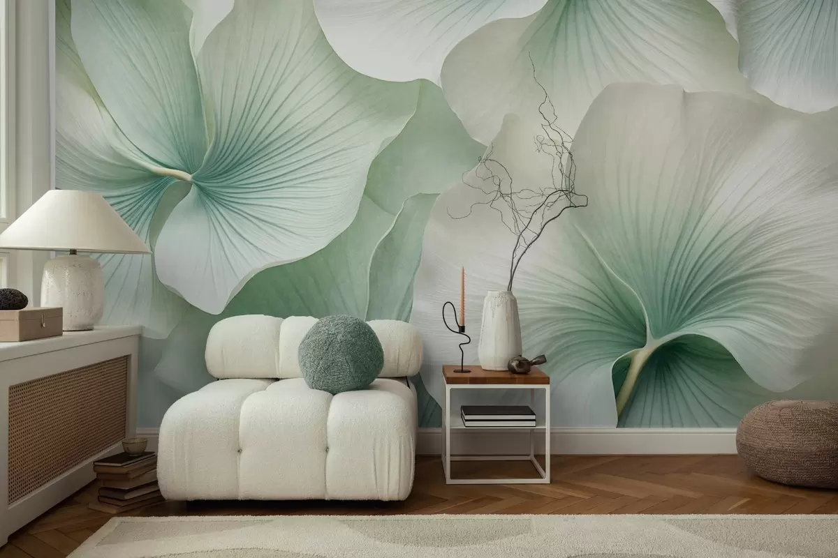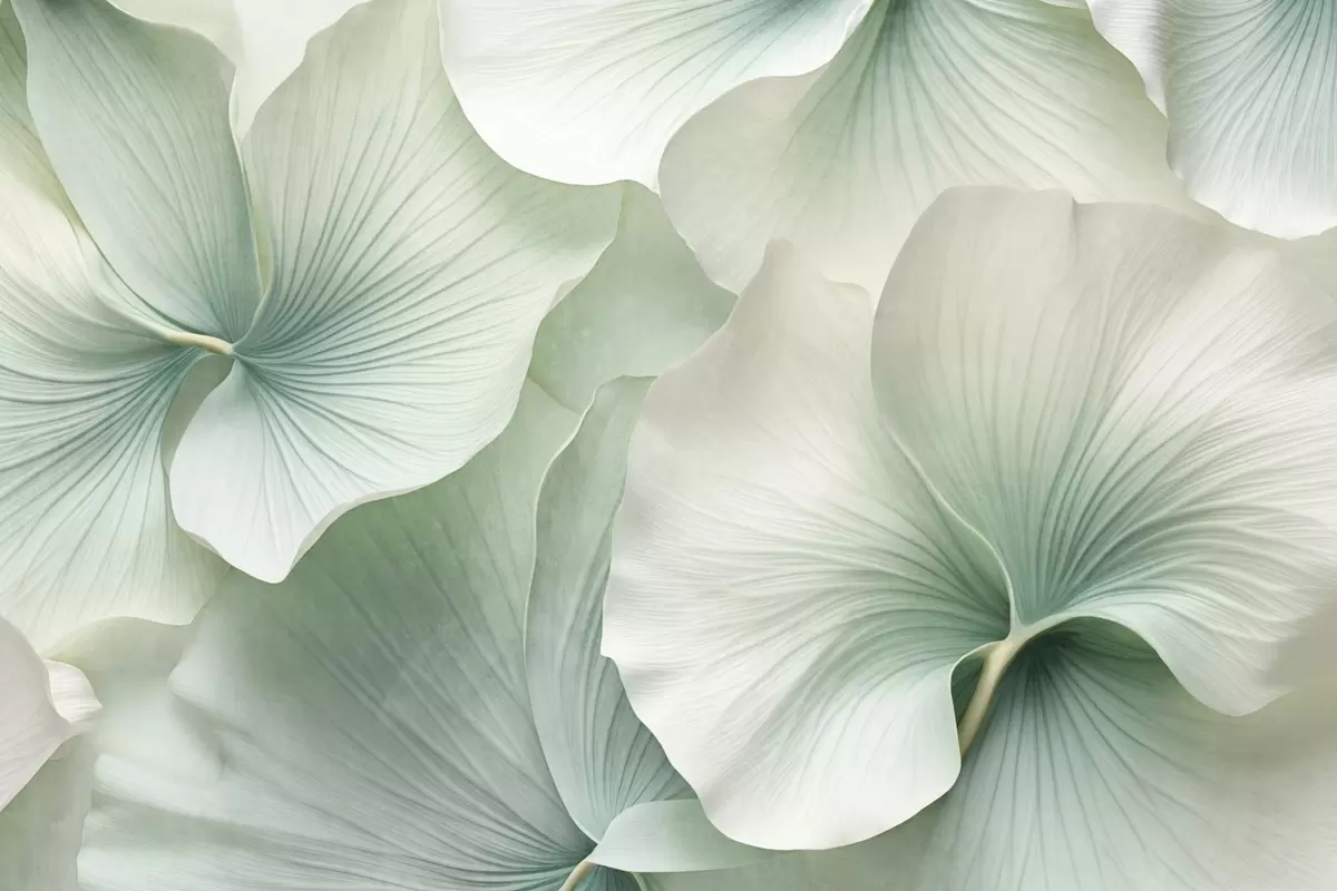 White and green gingko leaves, soft textured, abstract floral background, minimalist modern style - Wall mural (No. w09421)