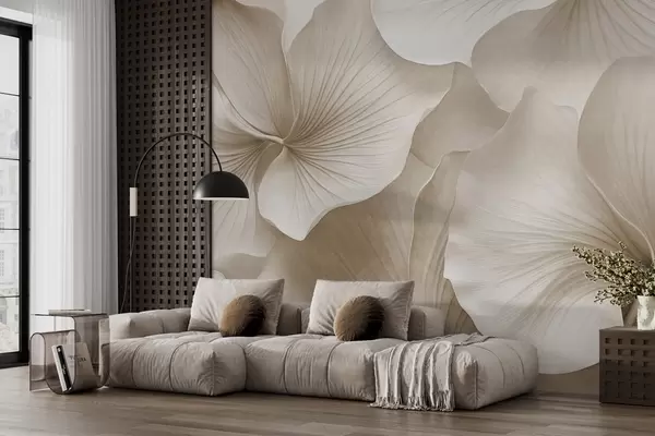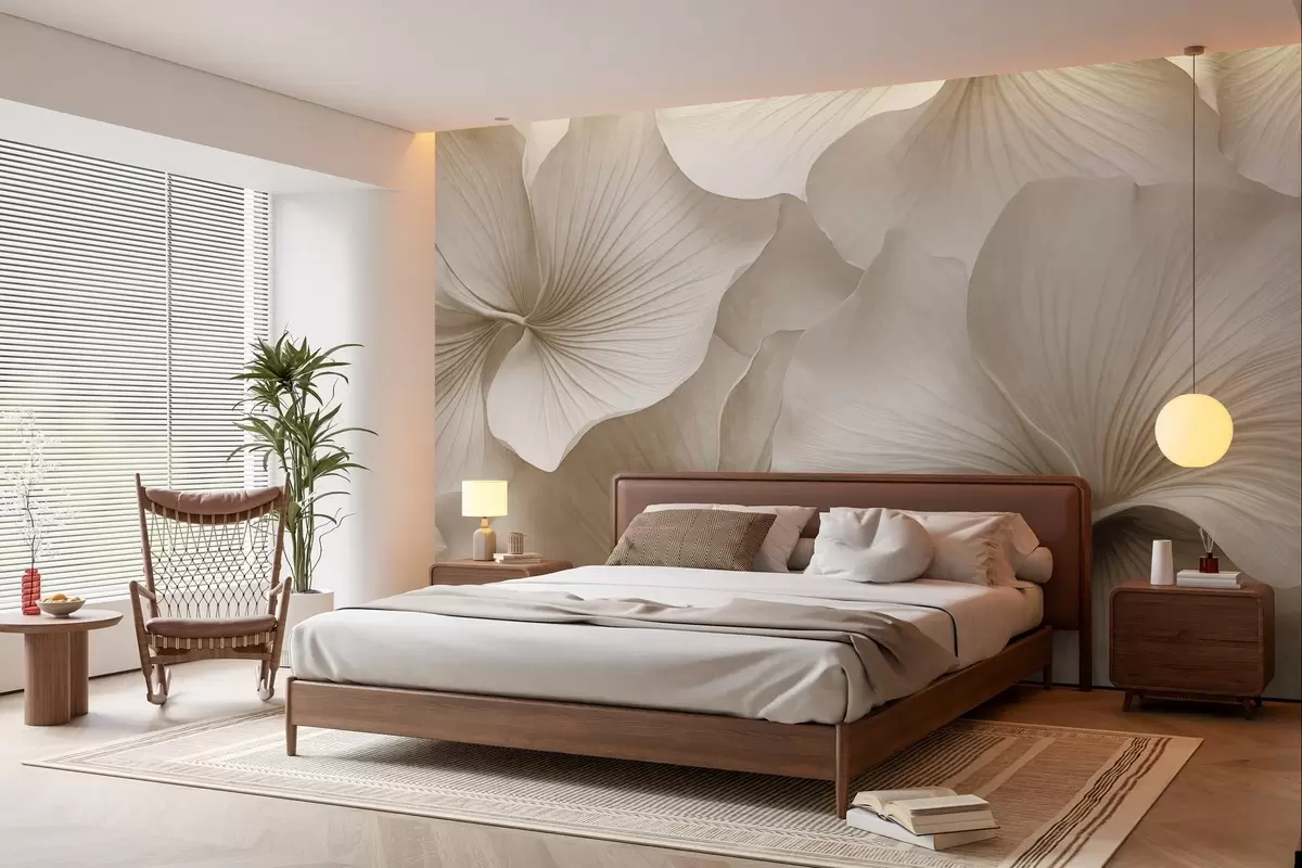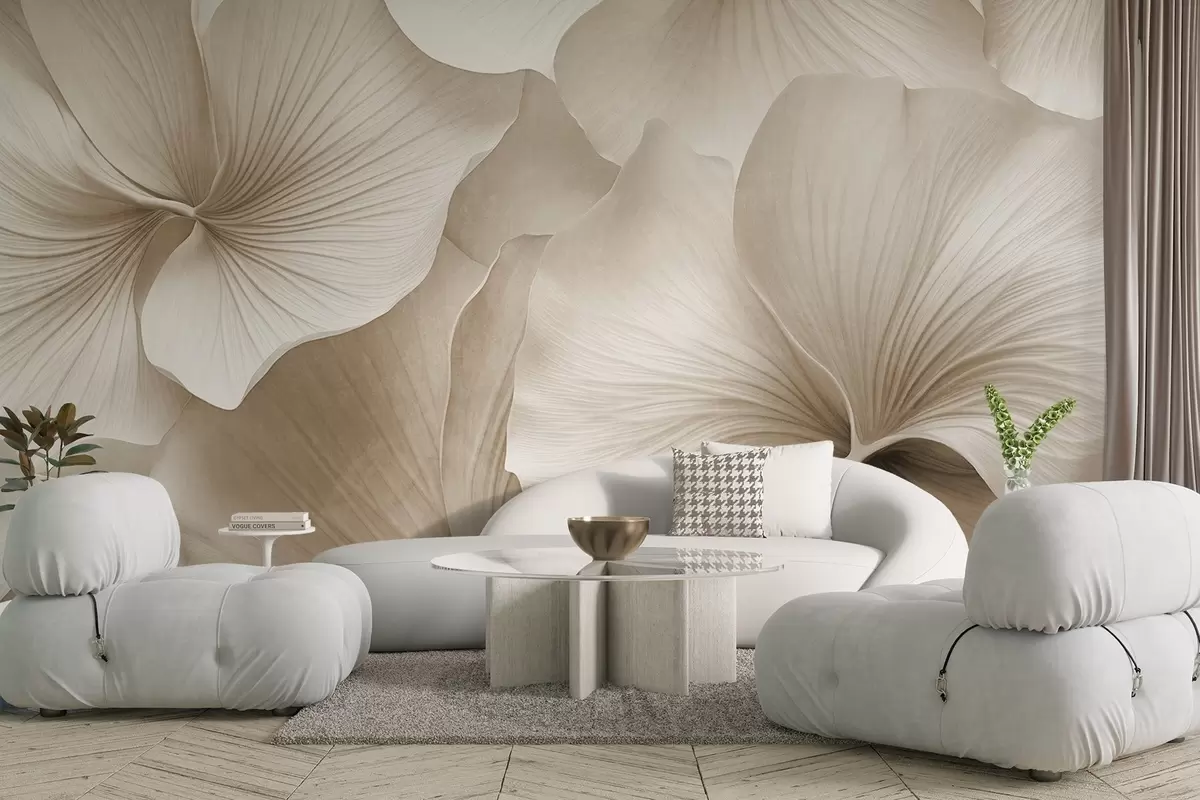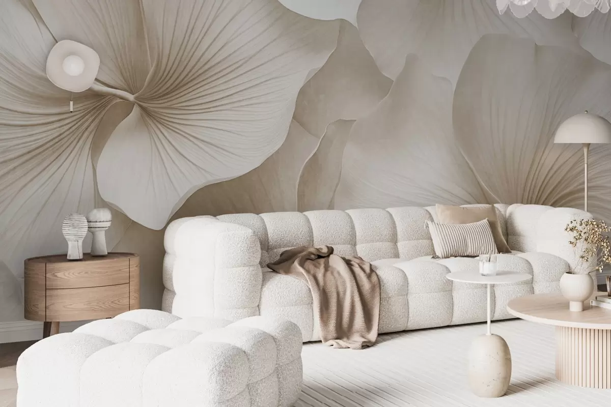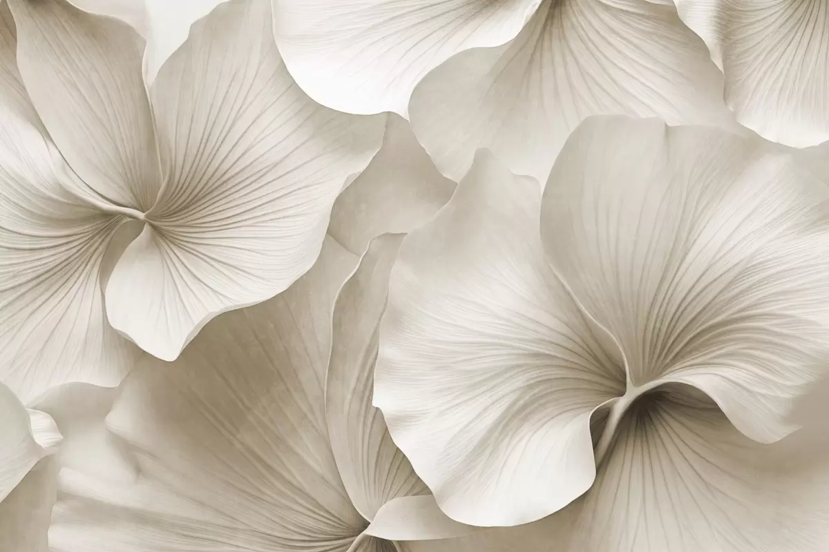 White and beige gingko leaves, soft textured, abstract floral background, minimalist modern style - Wall mural (No. w09421v1)