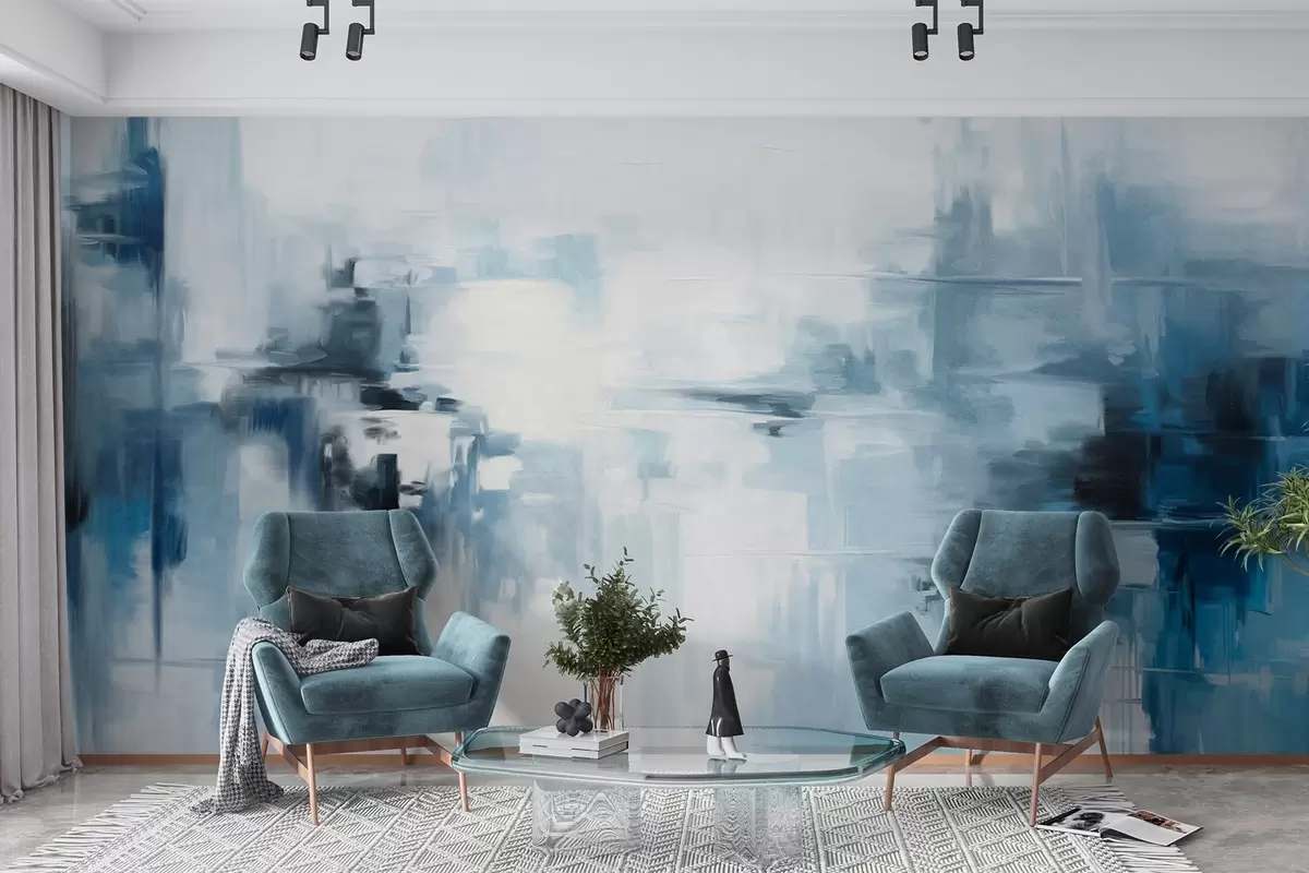 Abstract textured landscape painting imitation with blue and white brushstrokes, modern style - Wall mural (No. w09422)