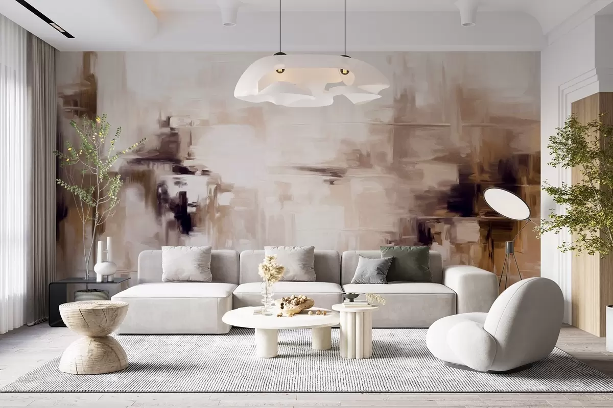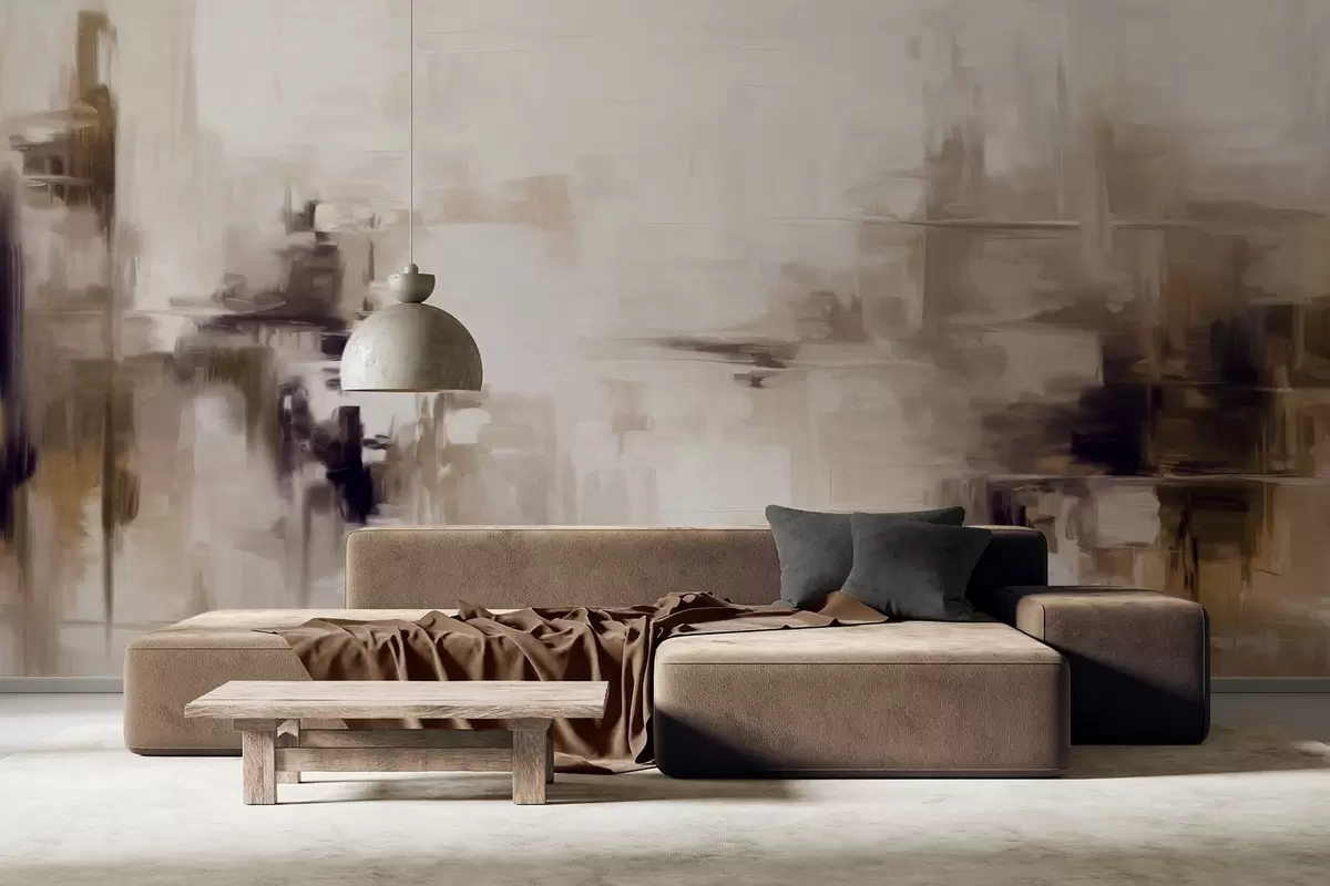 Abstract textured landscape painting imitation with brown and white brushstrokes, modern style - Wall mural (No. w09422v1)