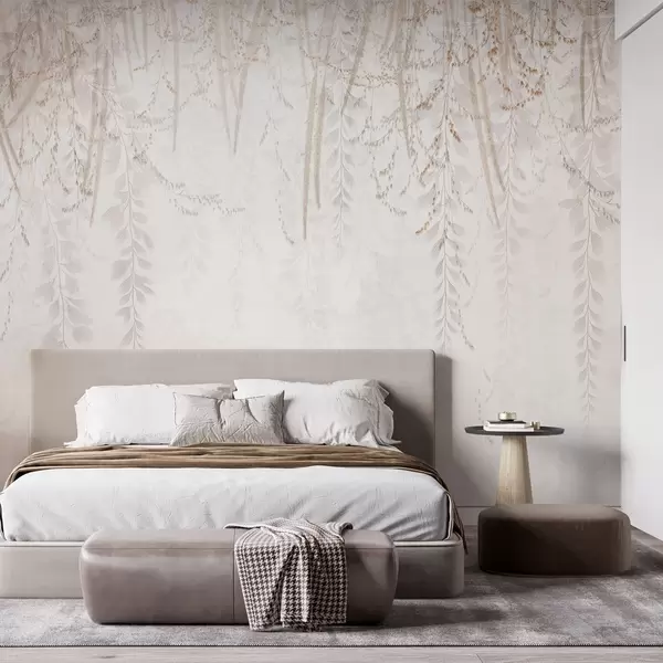 Light hanging leaves and branches in beige tones - Wall mural (No. w09433)