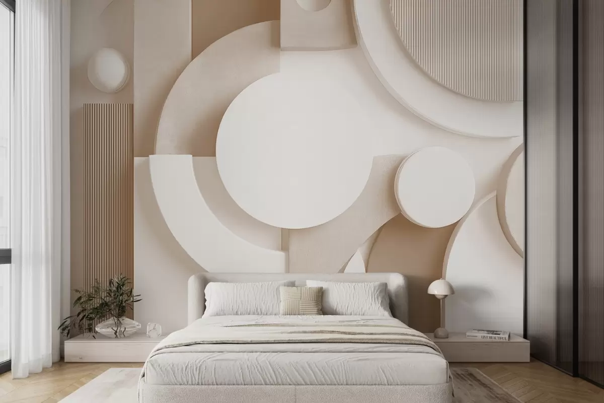 Modern volumetric abstraction in beige shades - Wall mural (No. w09441v1)