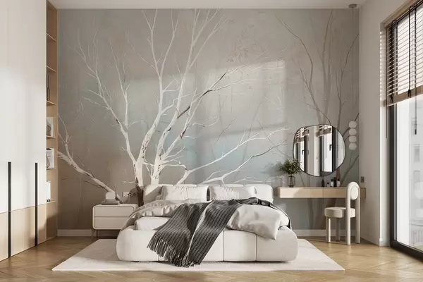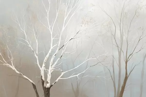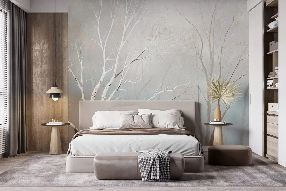 Light branches in morning mist in pastel tones - Wall mural (No. w09447)