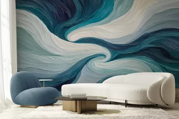 Abstract water and wind in cool tones - Wall mural (No. w09453)