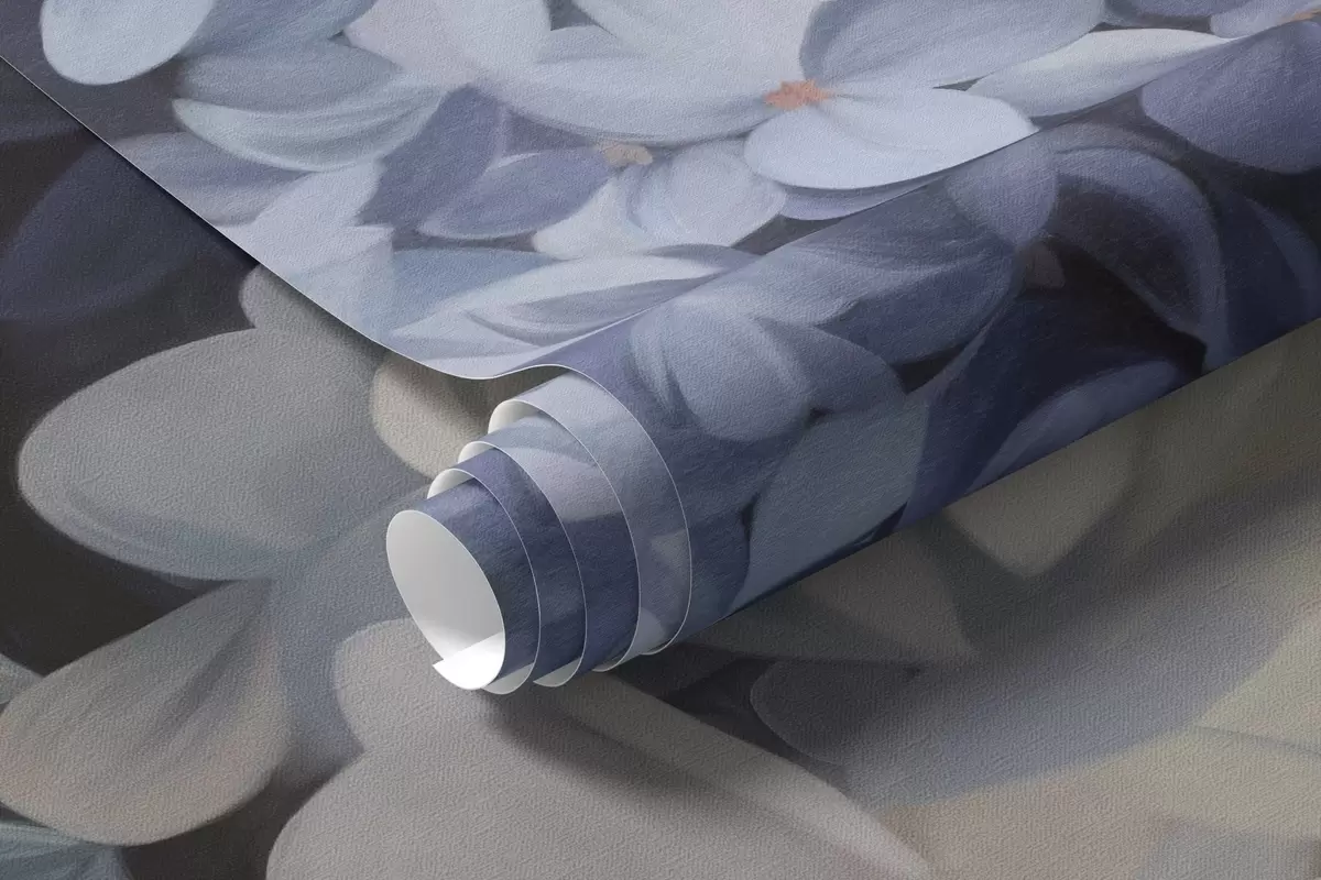 Textured dark blue painting imitation of hydrangeas flowers with big leaves, abstract and dark background - Wall mural (No. w09465v1)