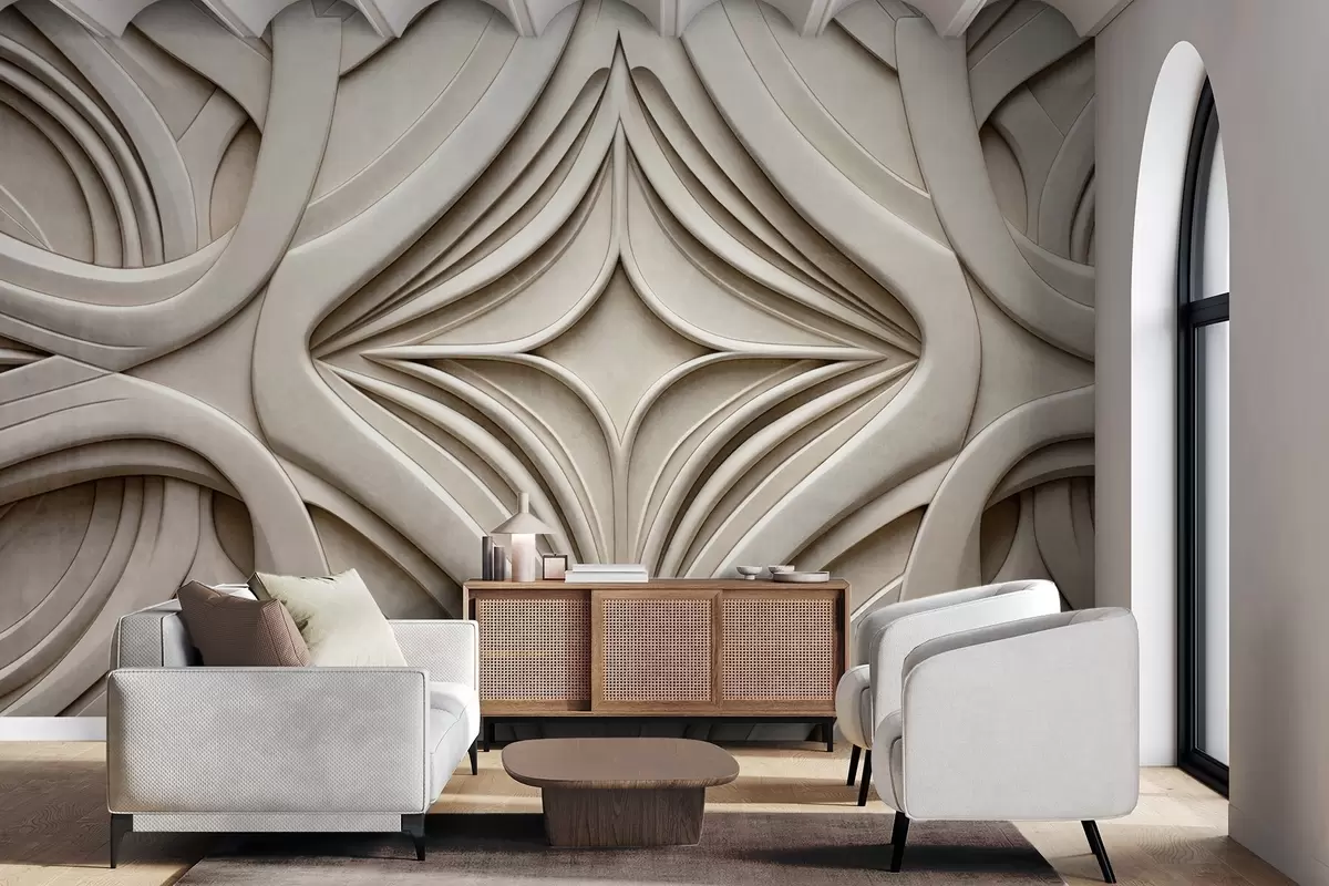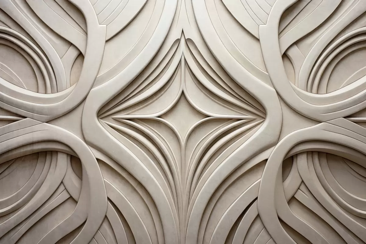 Abstract symmetrical textured geometric print, light beige color, art deco style , intricate details - Wall mural (No. w09473)