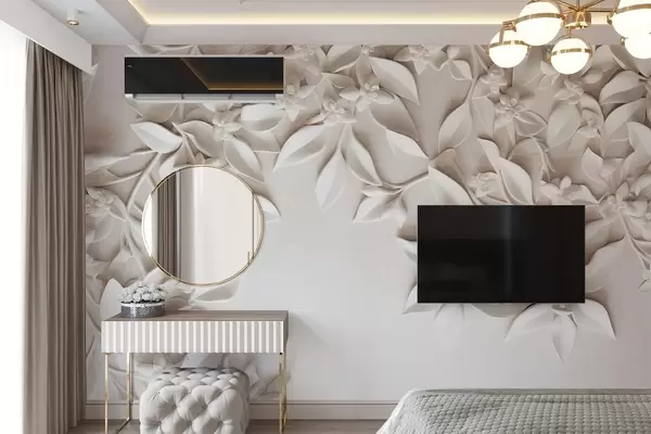 White textured flowers and leaves, floral arrangement , elegant design, minimalist style, decorative art - Wall mural (No. w09479)