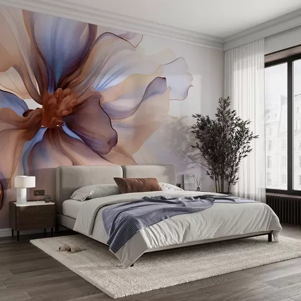 Detailed large textured flower with white, blue and brown petals, on white background - Wall mural (No. w09498)