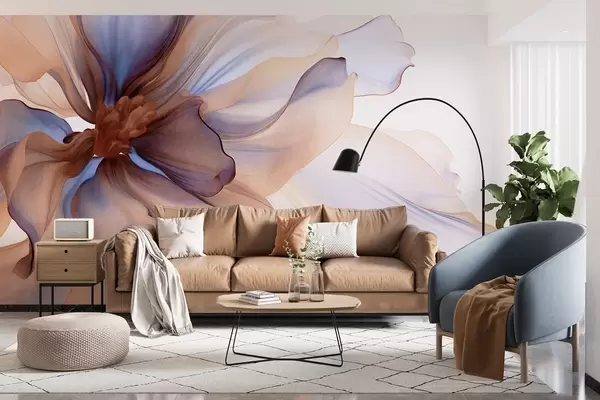 Detailed large textured flower with white, blue and brown petals, on white background - Wall mural (No. w09498)