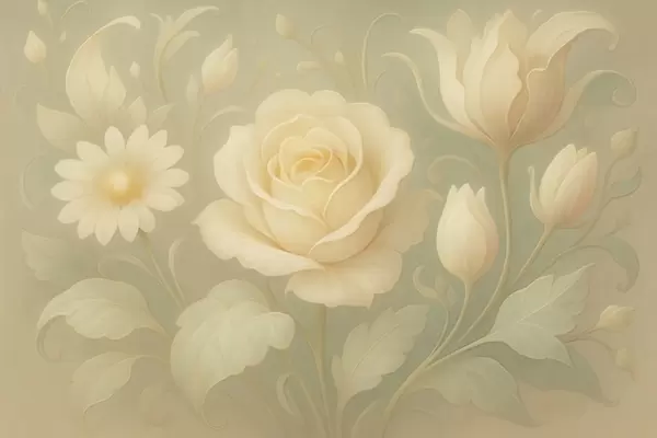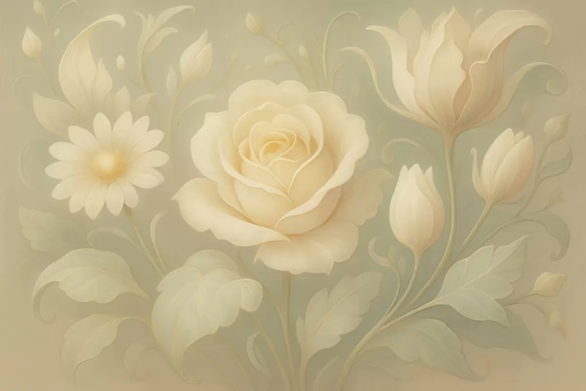 Delicate vintage composition with beige roses on a light green background - Wall mural (No. w09499)