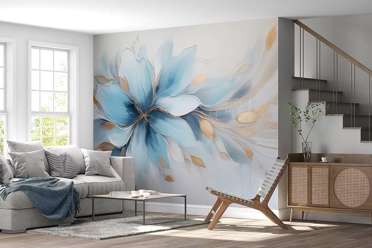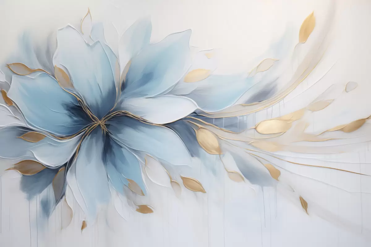 Abstract blue flower of calm with leaves - Wall mural (No. w09500)