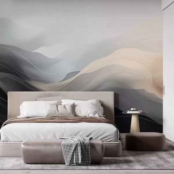 Abstract misty waves in gray-cream tones with yellow lines - Wall mural (No. w09504)