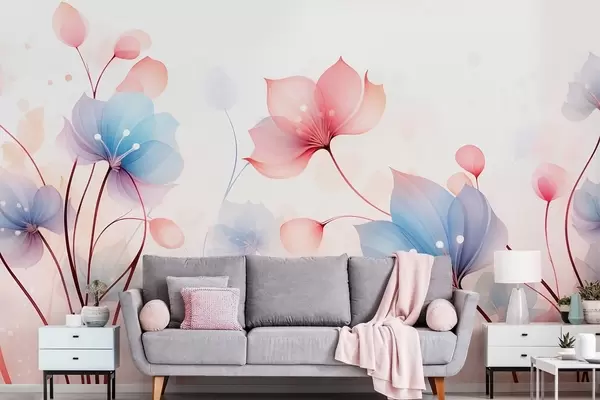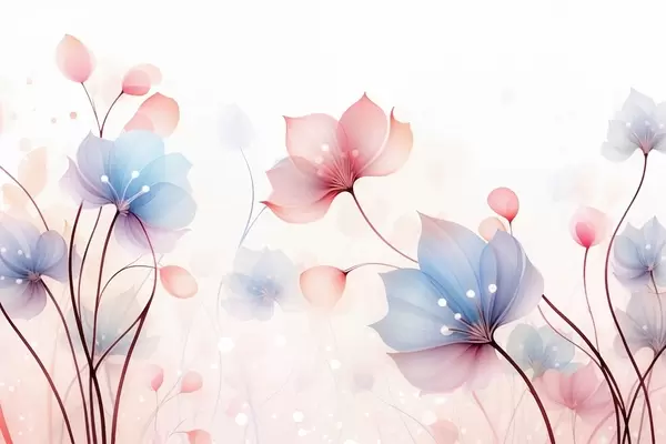 Delicate pink-blue flowers — airy flora on a white watercolor background - Wall mural (No. w09507)