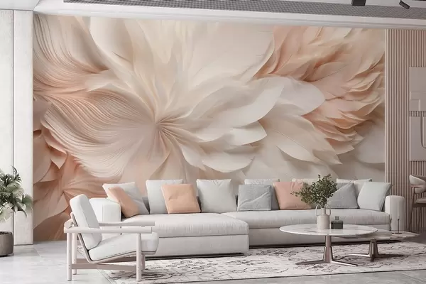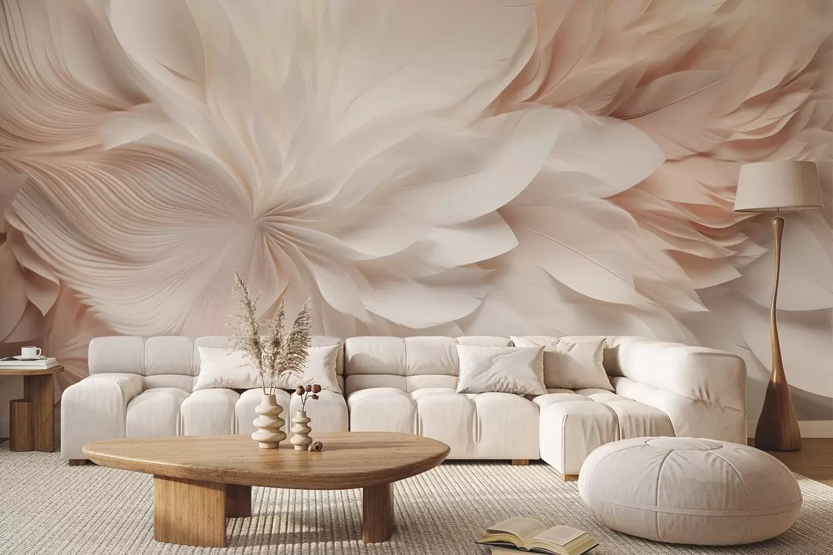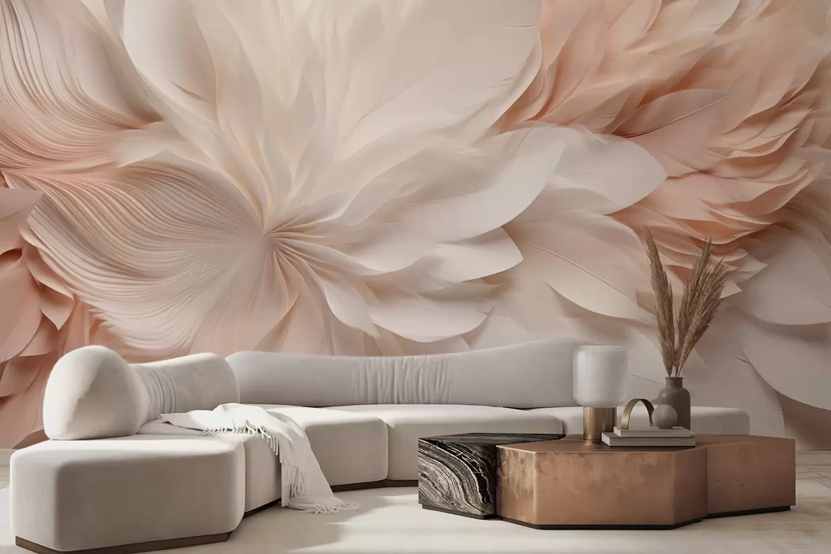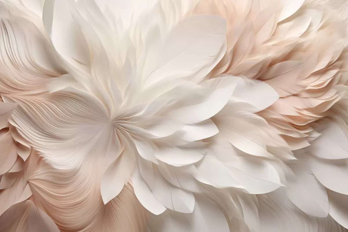 Delicate abstract feathers in motion in beige and cream tones - Wall mural (No. w09509)