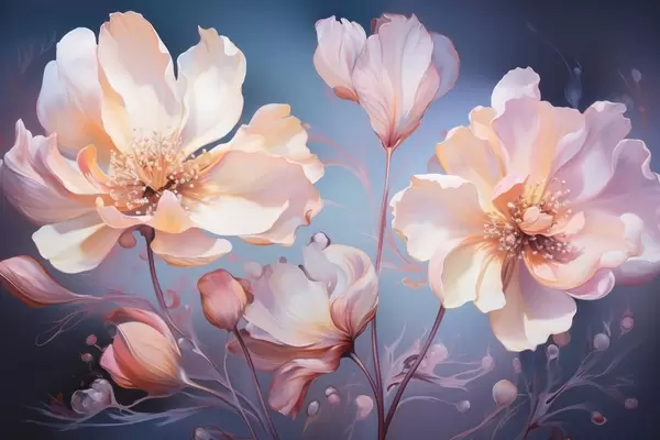 Airy rose-cream peonies in watercolor style on a deep blue background - Wall mural (No. w09513)