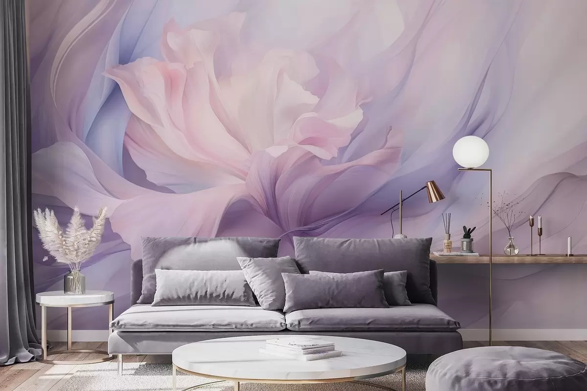 Gentle petal haze: an airy flower in a pastel-lilac mist - Wall mural (No. w09517)