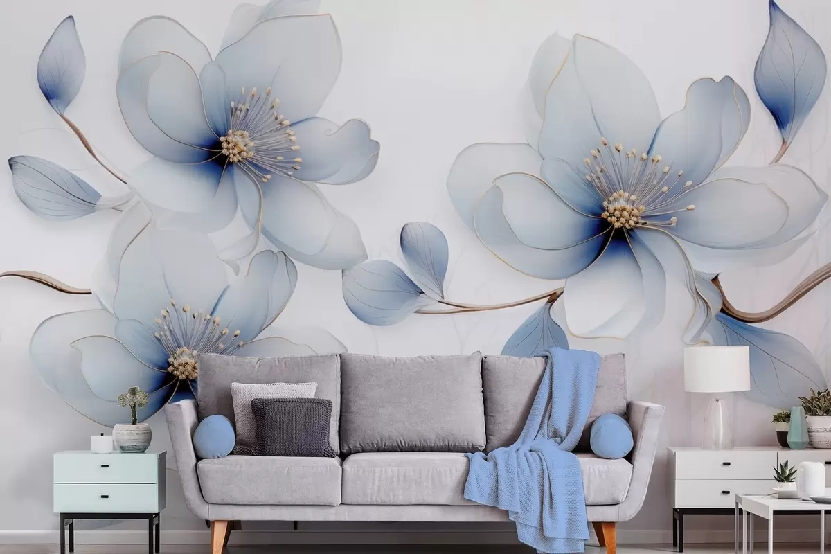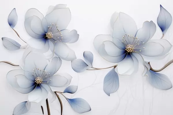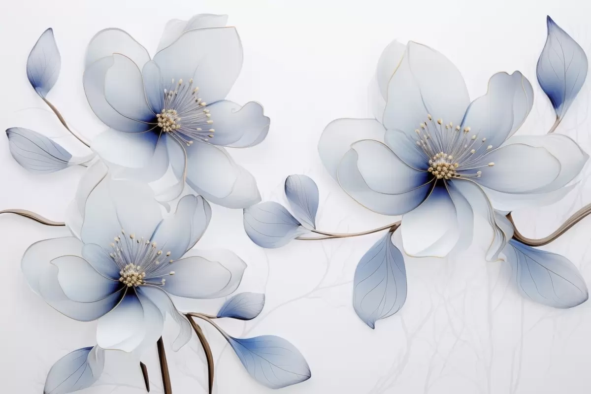 Elegant magnolia flower composition in shades of blue - Wall mural (No. w09520)
