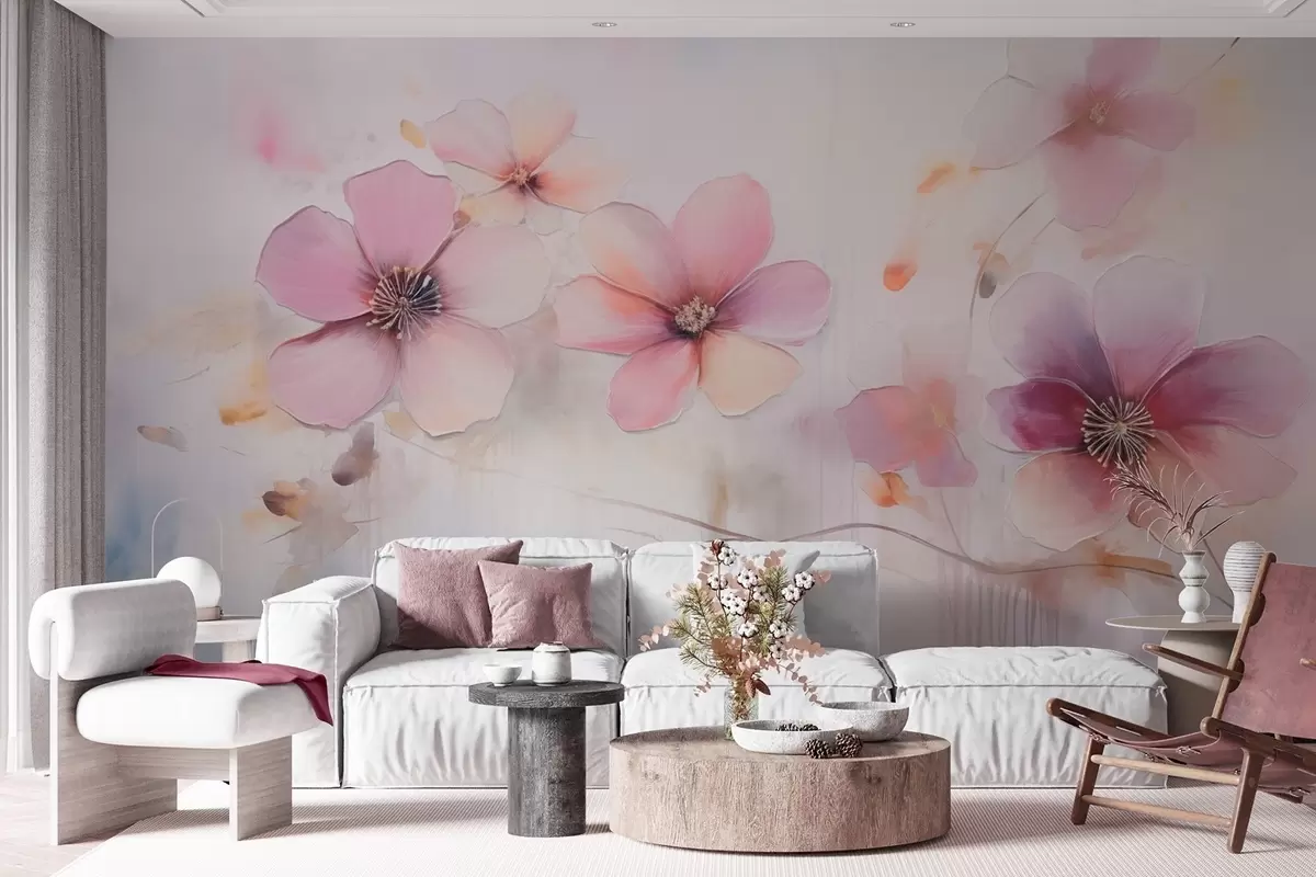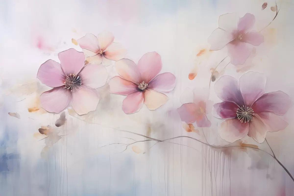 Branch with pink flowers in watercolor style - Wall mural (No. w09522)