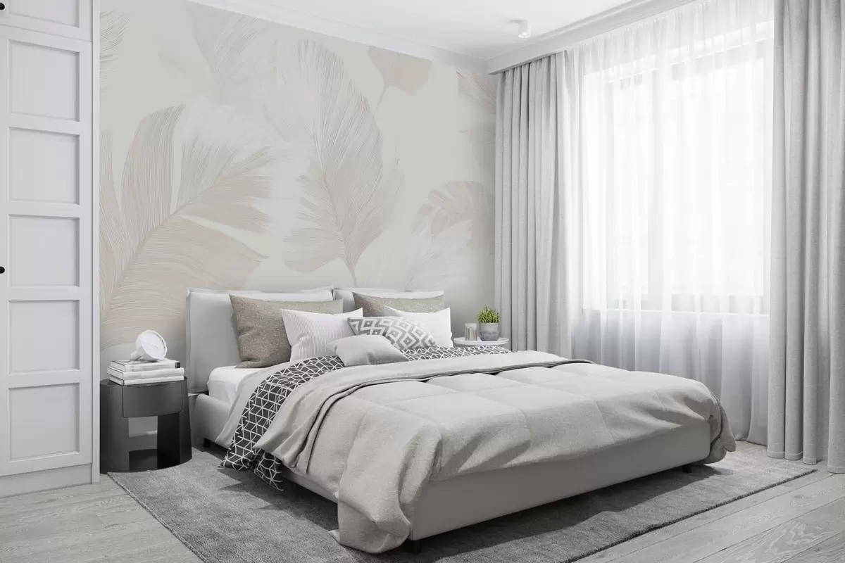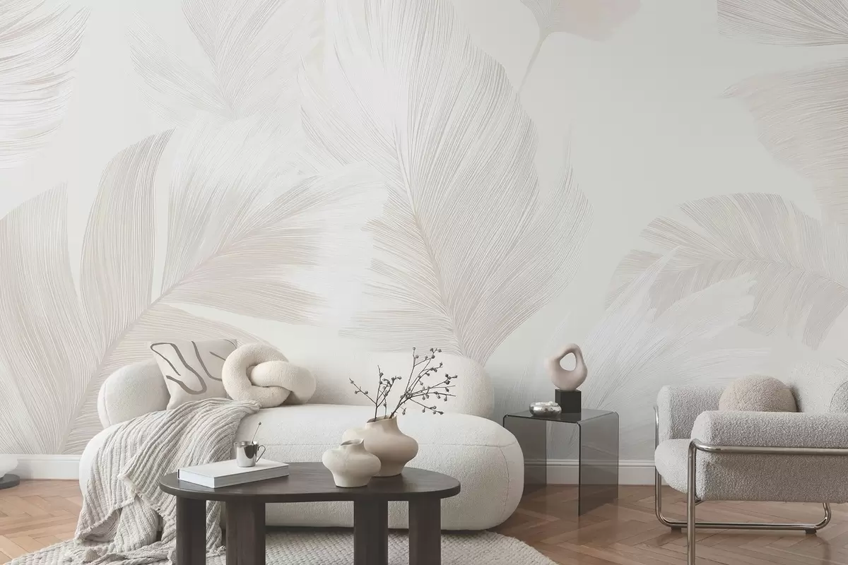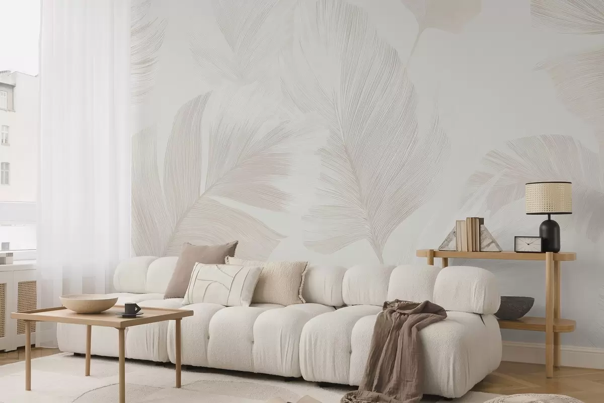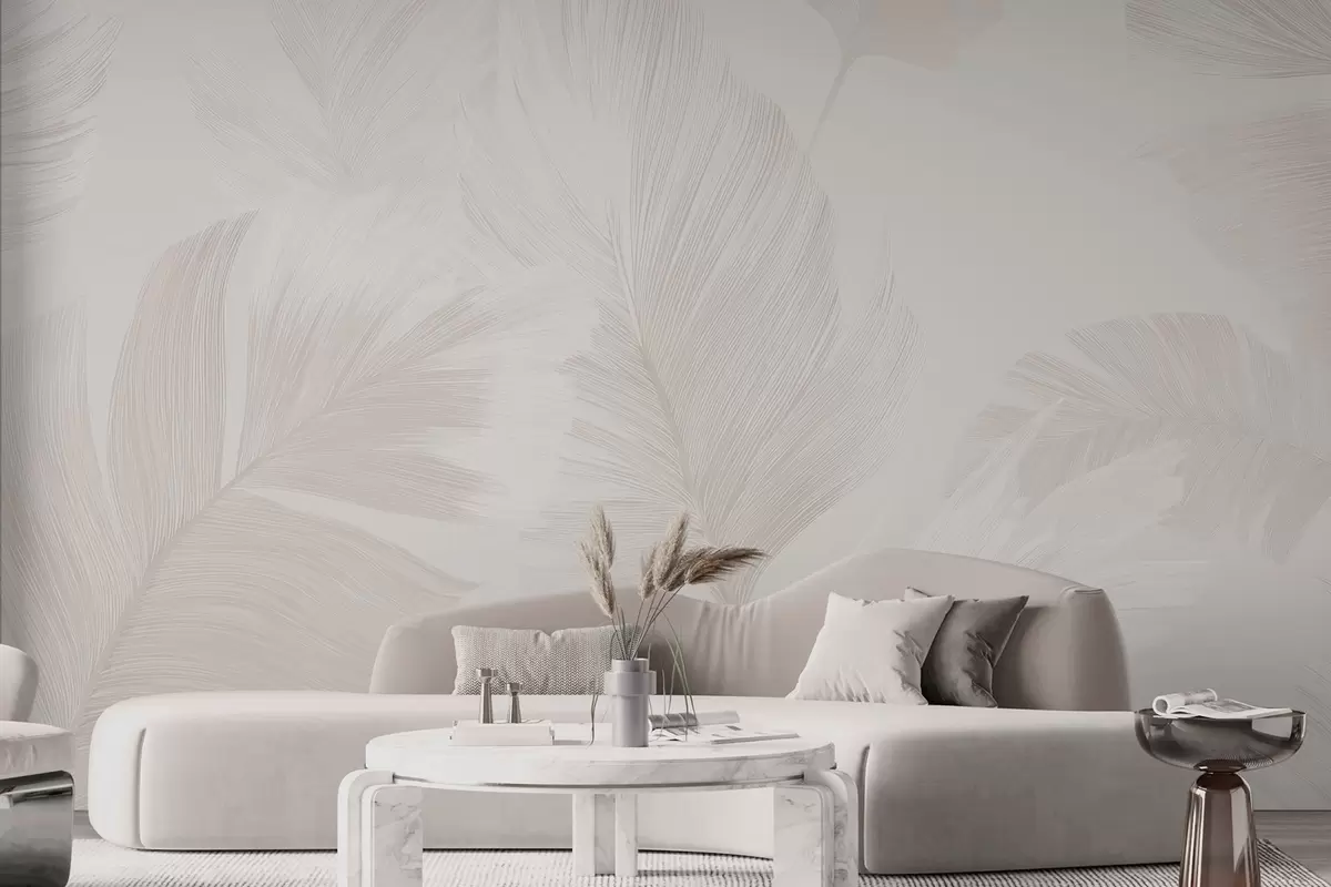 Soft ivory feathers in milky beige tones - Wall mural (No. w09563)