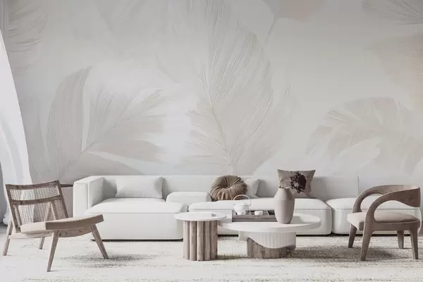 Soft ivory feathers in milky beige tones - Wall mural (No. w09563)