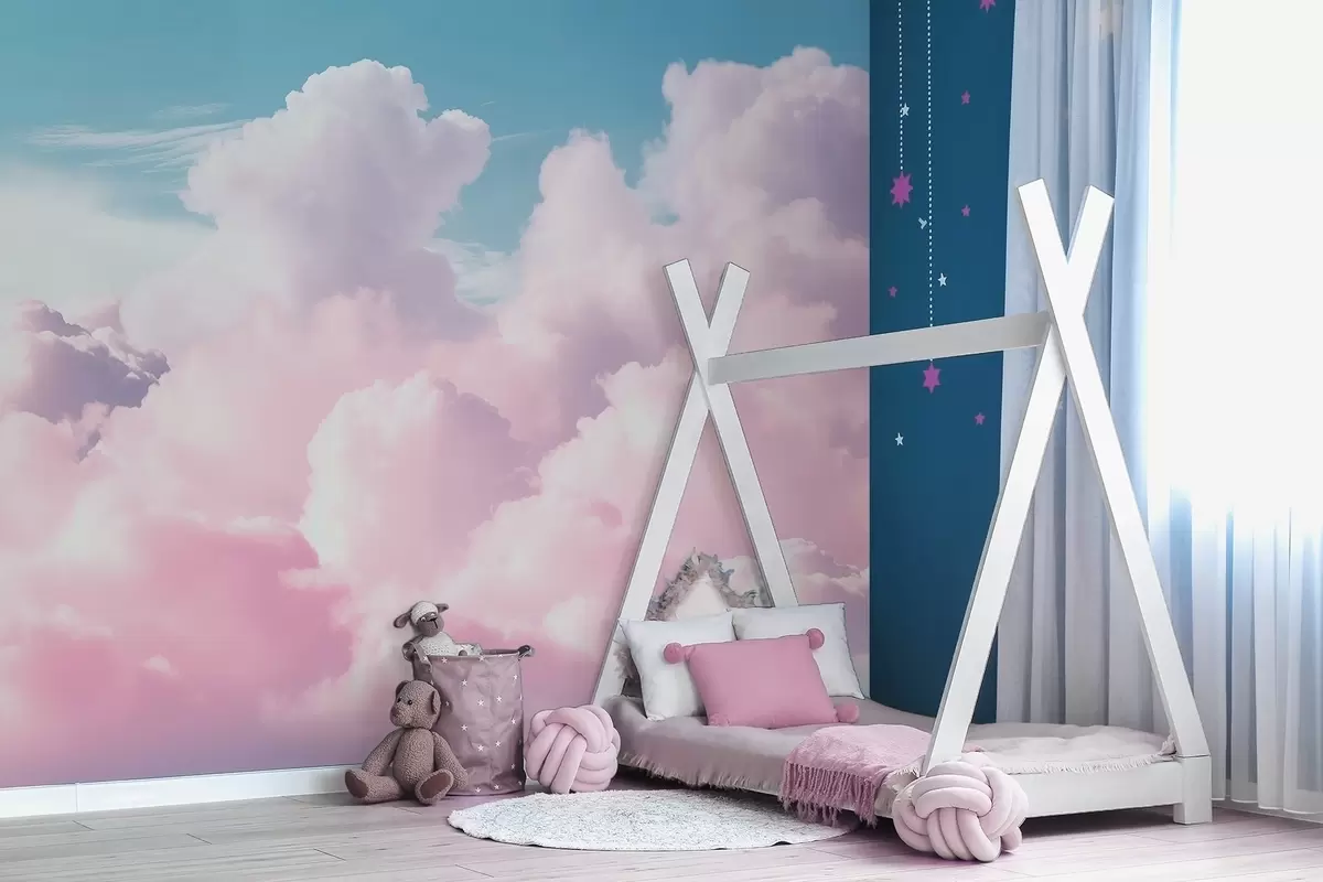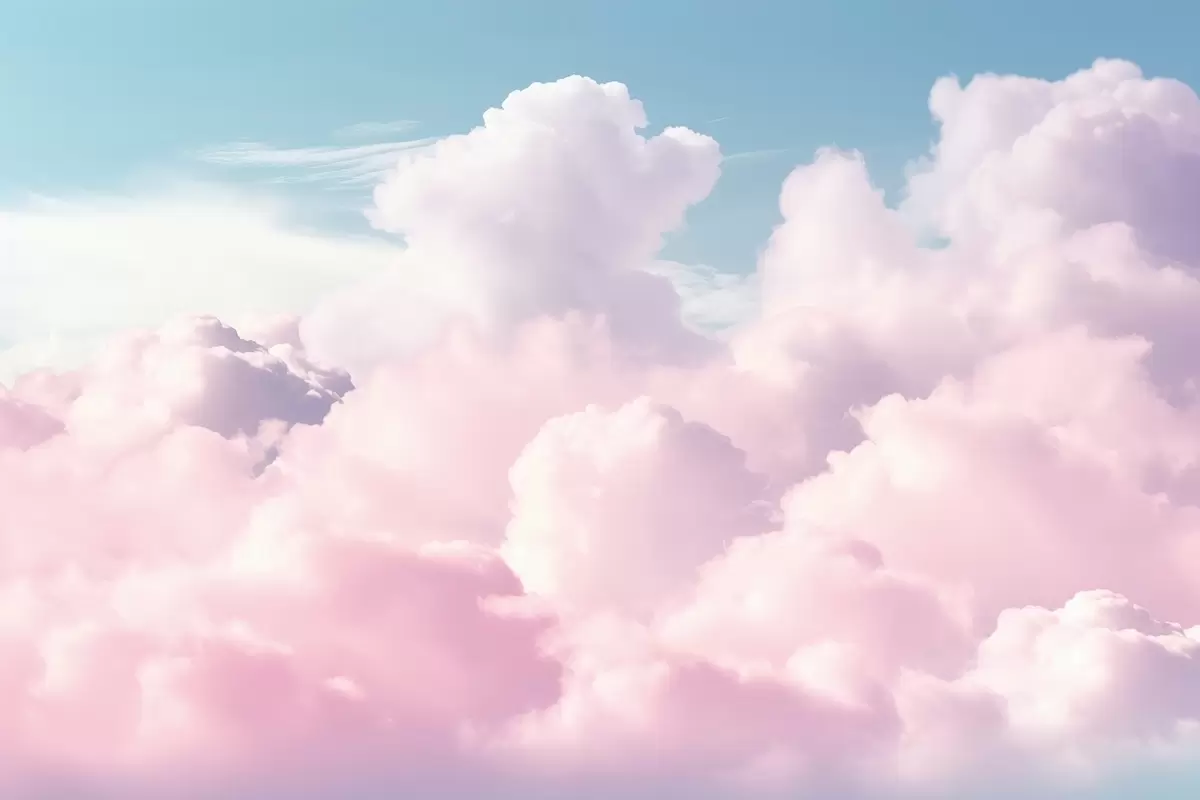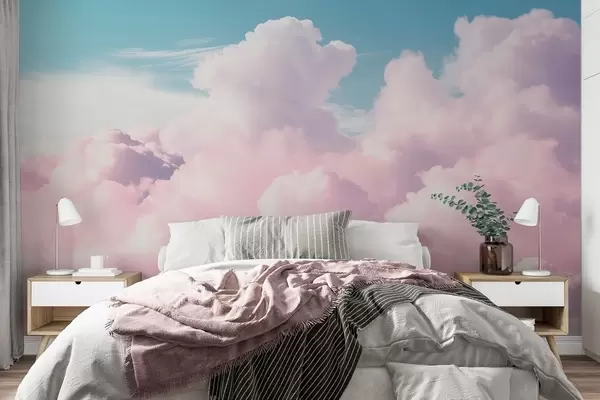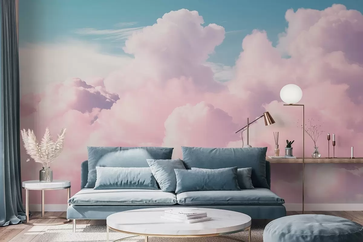 Soft airy pink clouds in a blue sky - Wall mural (No. w09569)