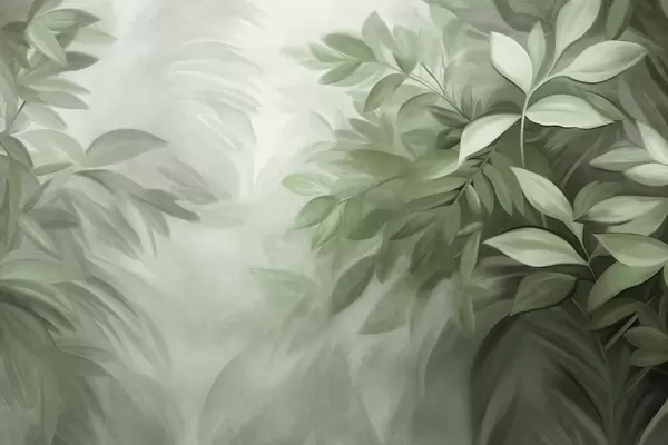 Brown and beige leaves with soft, blurred textured foliage, in a painterly style with visible brushstrokes - Wall mural (No. w09584)