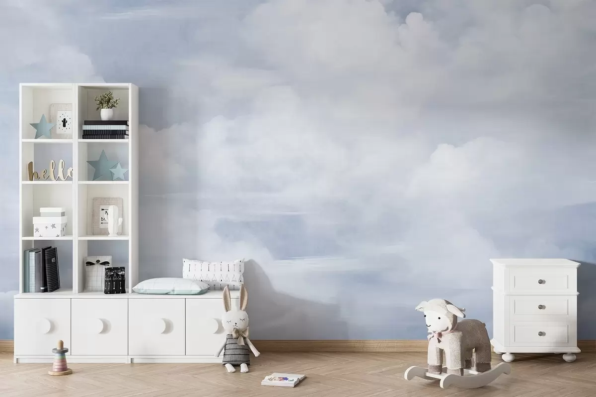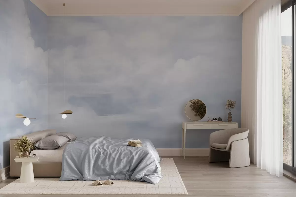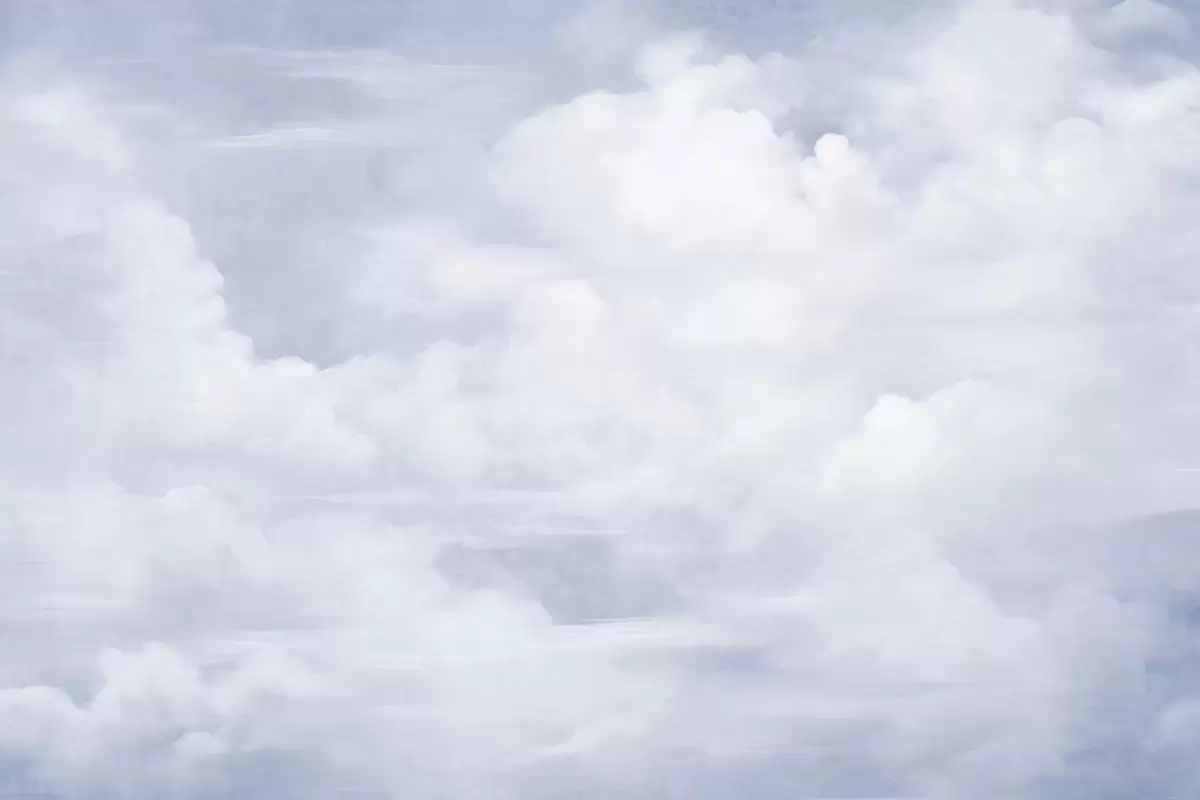 Pastel textured sky filled with white clouds with soft and minimalist aesthetic - Wall mural (No. w09589)