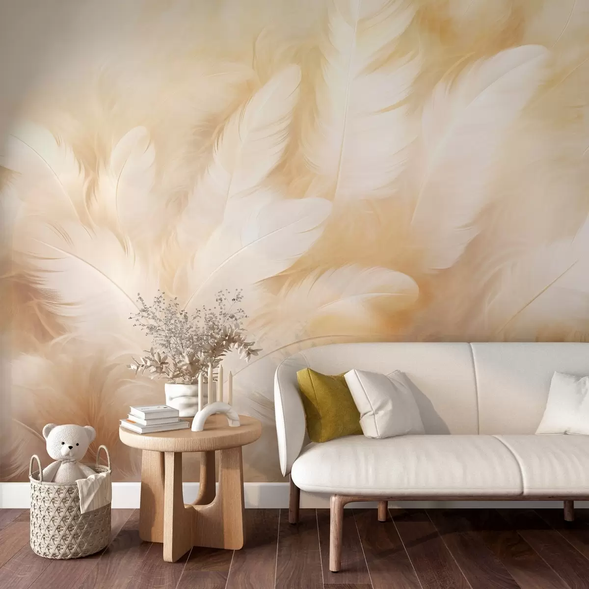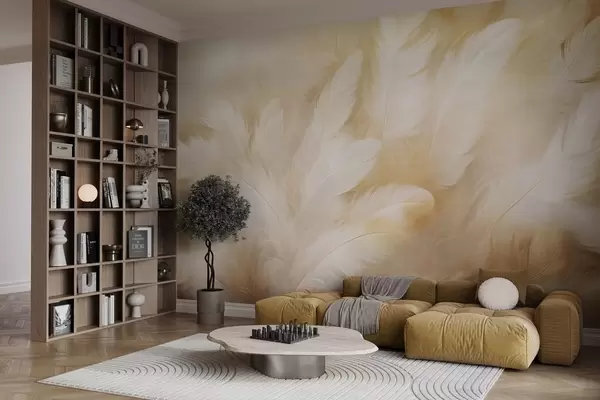 White and yellow feathers with soft texture - Wall mural (No. w09606)