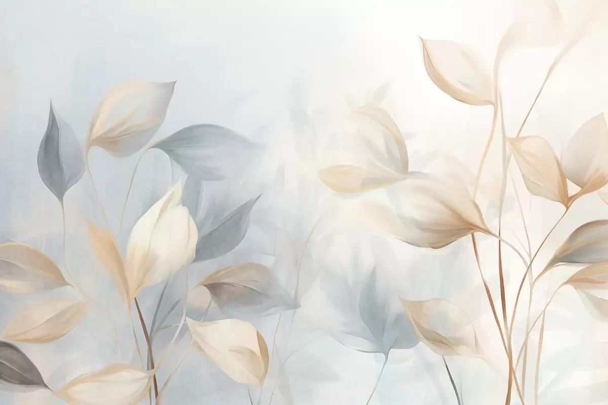 A soft, delicate, translucent leaves in muted tones of beige, peach, and pale blue, textured pastel art - Wall mural (No. w09607)