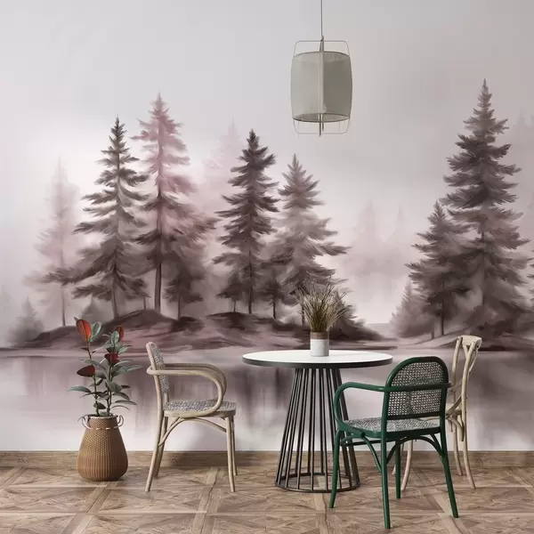wall murals A textured foggy forest with tall pine trees painting imitation w09610v1