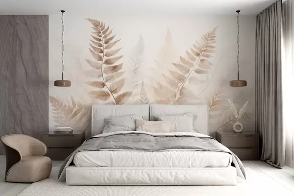 Textured dried fern fronds in various shades of brown, with a soft, light background in watercolor style - Wall mural (No. w09615)