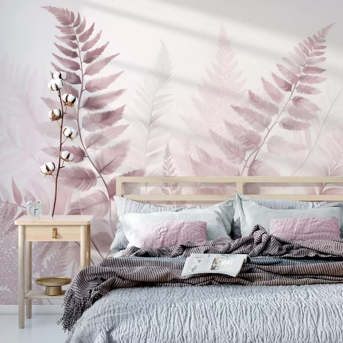 Textured dried fern fronds in various shades of pink, with a soft, light background in watercolor style - Wall mural (No. w09615v2)