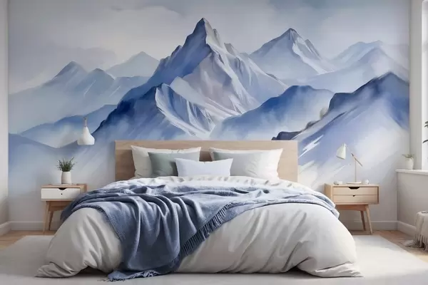 Textured snowy mountains with a soft, watercolor effect and a palette of blue and white - Wall mural (No. w09630)