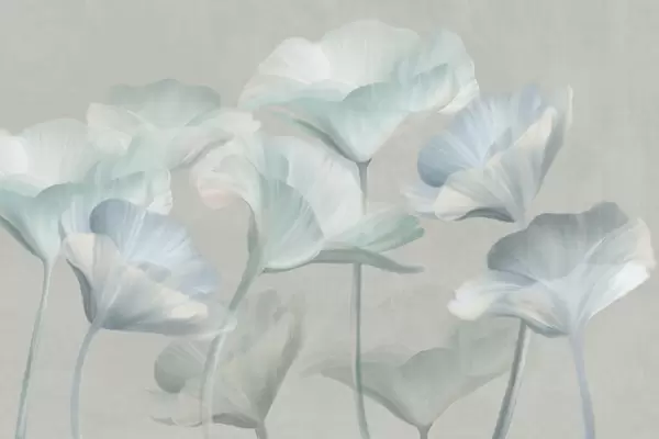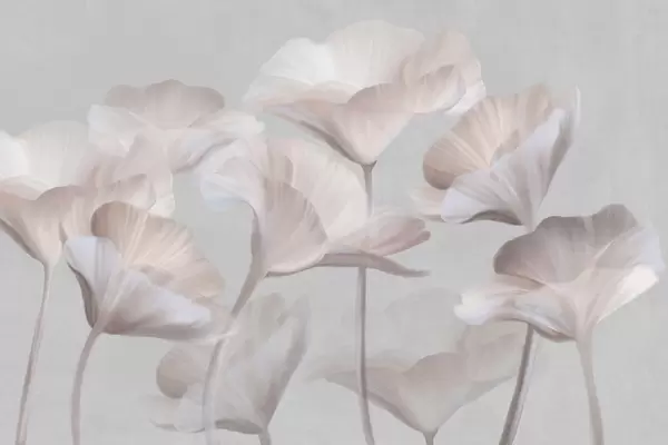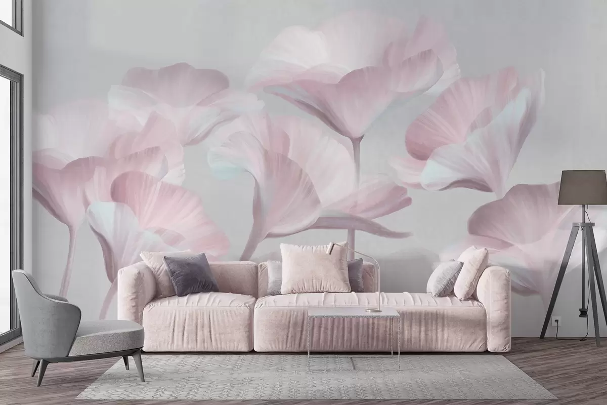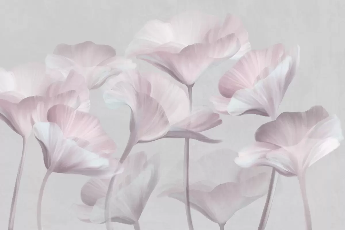 Pale pink textured translucent lotus flowers with delicate petals against a muted gray background - Wall mural (No. w09640v1)