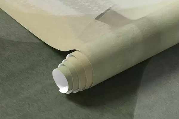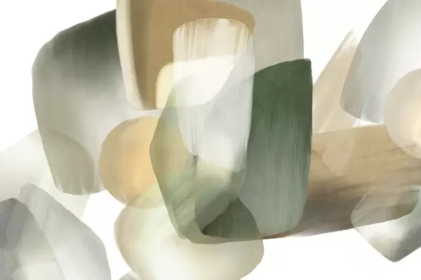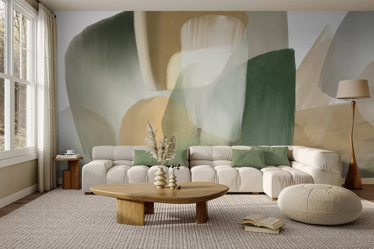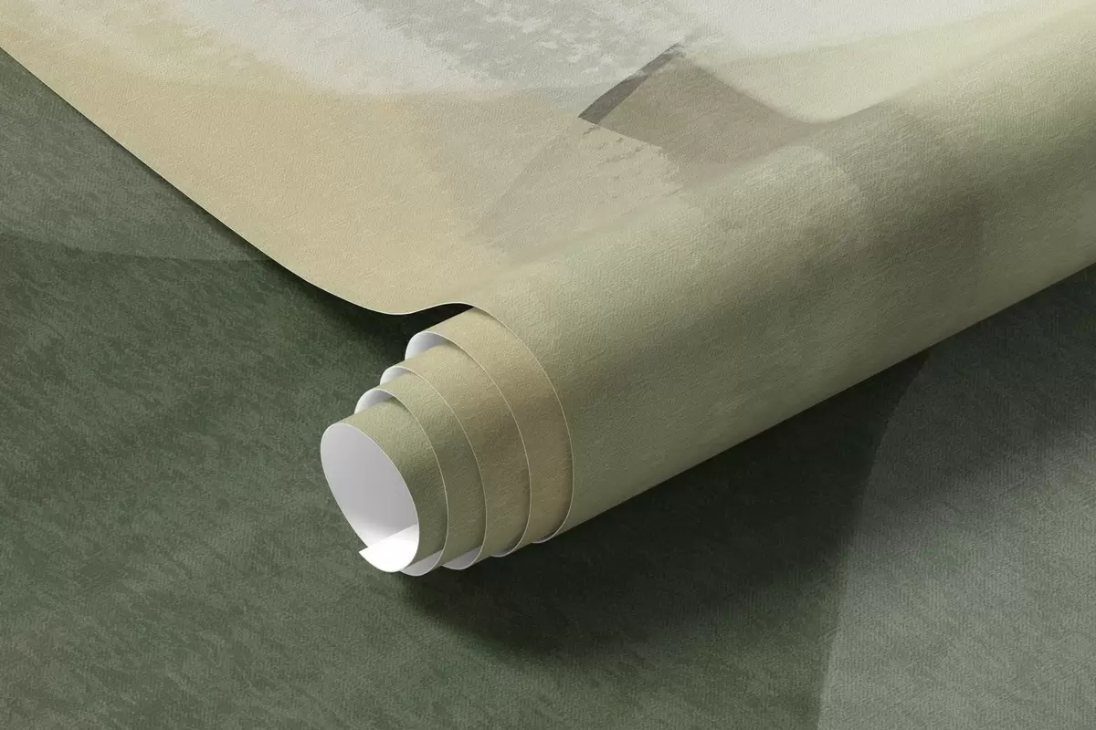 Abstract texrured shapes in muted green and beige colors, with soft edges and overlapping layers - Wall mural (No. w09642)