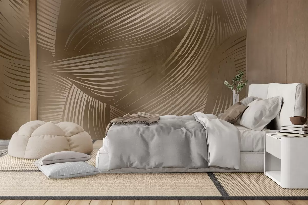 Abstract print of flowing, curved lines in shades of dark brown creating a textured, modern art - Wall mural (No. w09646)