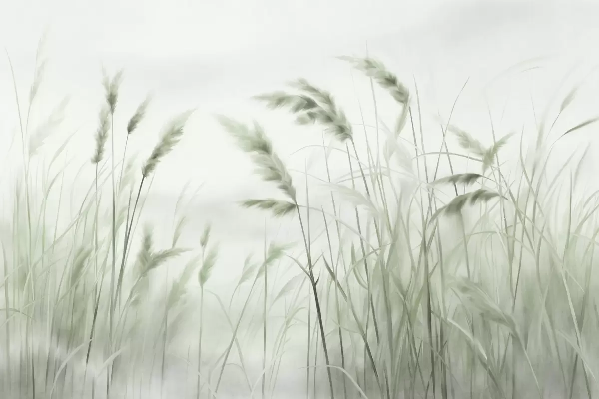 Tall, textured dry grass with ears of wheat in the field against a soft, pale background - Wall mural (No. w09648v1)
