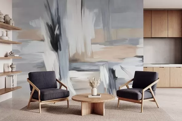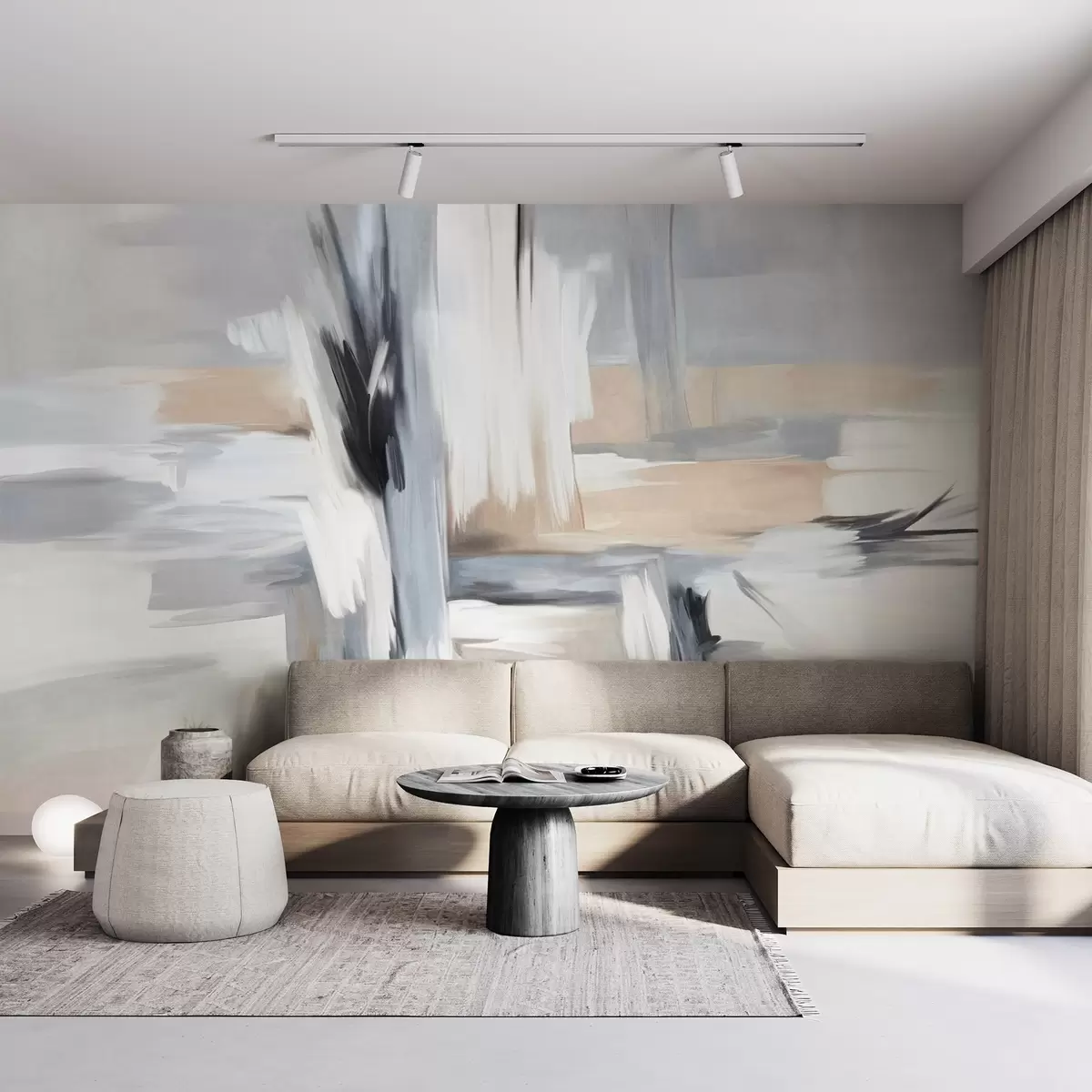 Abstract textured painting style with brushstrokes in shades of white, gray and beige - Wall mural (No. w09651)