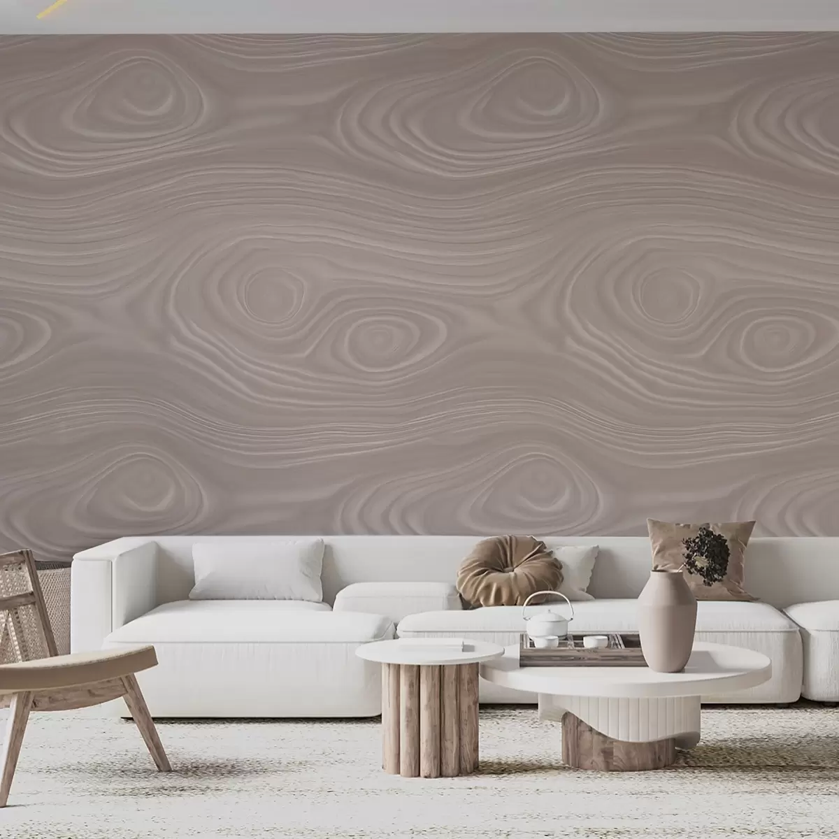 Abstract beige pattern with smooth lines and imitation of natural wood texture - Wall mural (No. w09681)