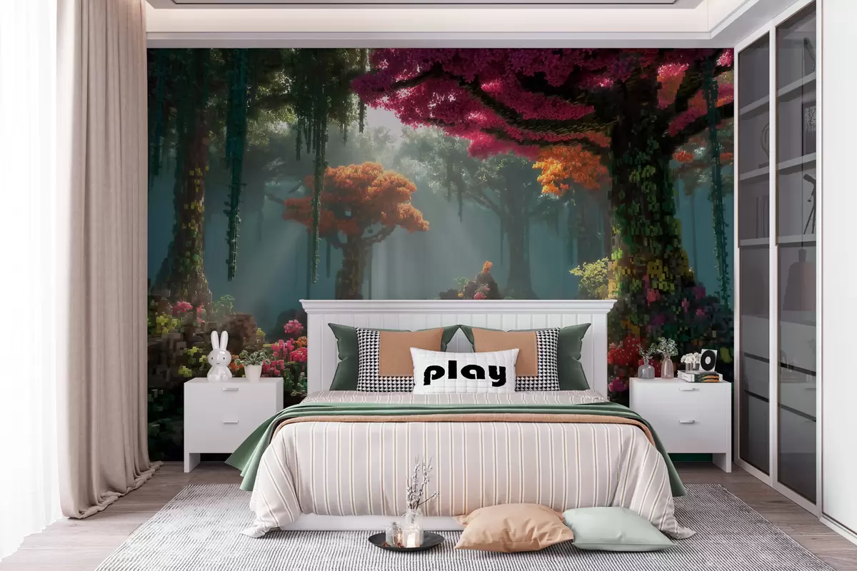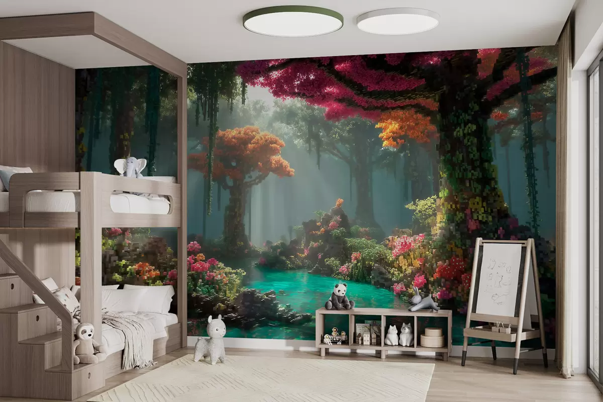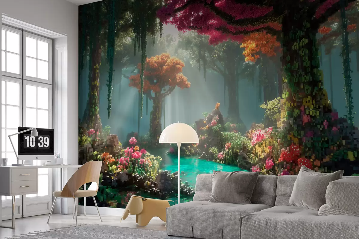 Pixel enchanted forest grove inspired by video games - Wall mural (No. w09683)