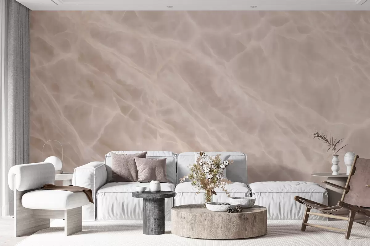 Elegant abstract artwork in a beige palette with a marble imitation - Wall mural (No. w09684)