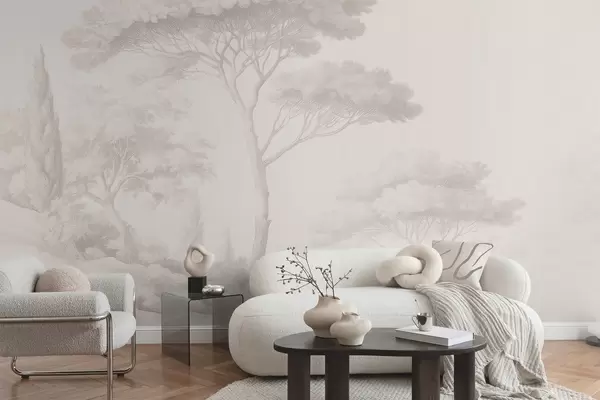 Calm forest landscape in a beige color palette - Wall mural (No. w09685)