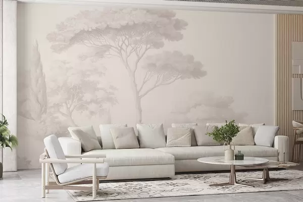 Calm forest landscape in a beige color palette - Wall mural (No. w09685)