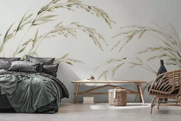 Delicate cereal grasses in pastel tones with a soft watercolor effect - Wall mural (No. w09712)