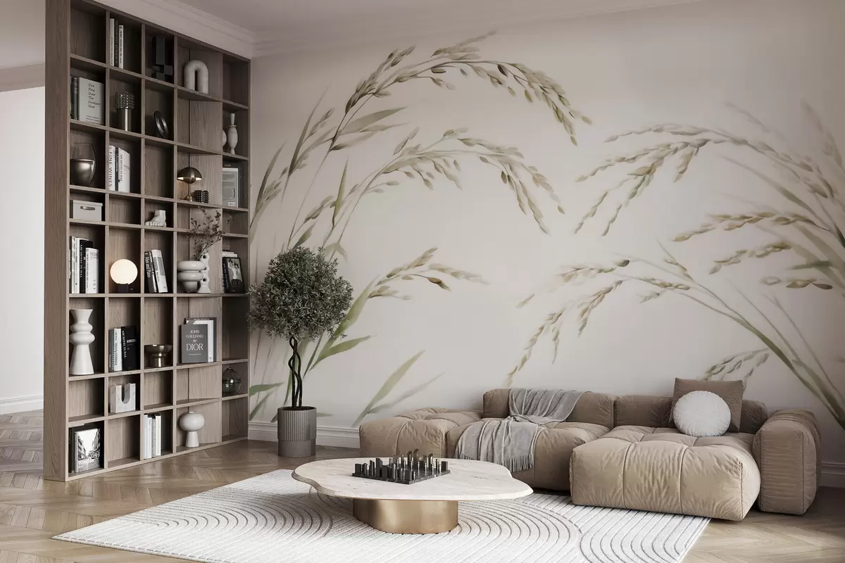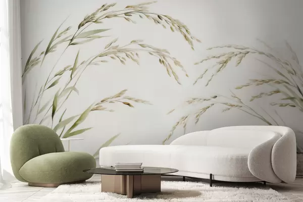 Delicate cereal grasses in pastel tones with a soft watercolor effect - Wall mural (No. w09712)