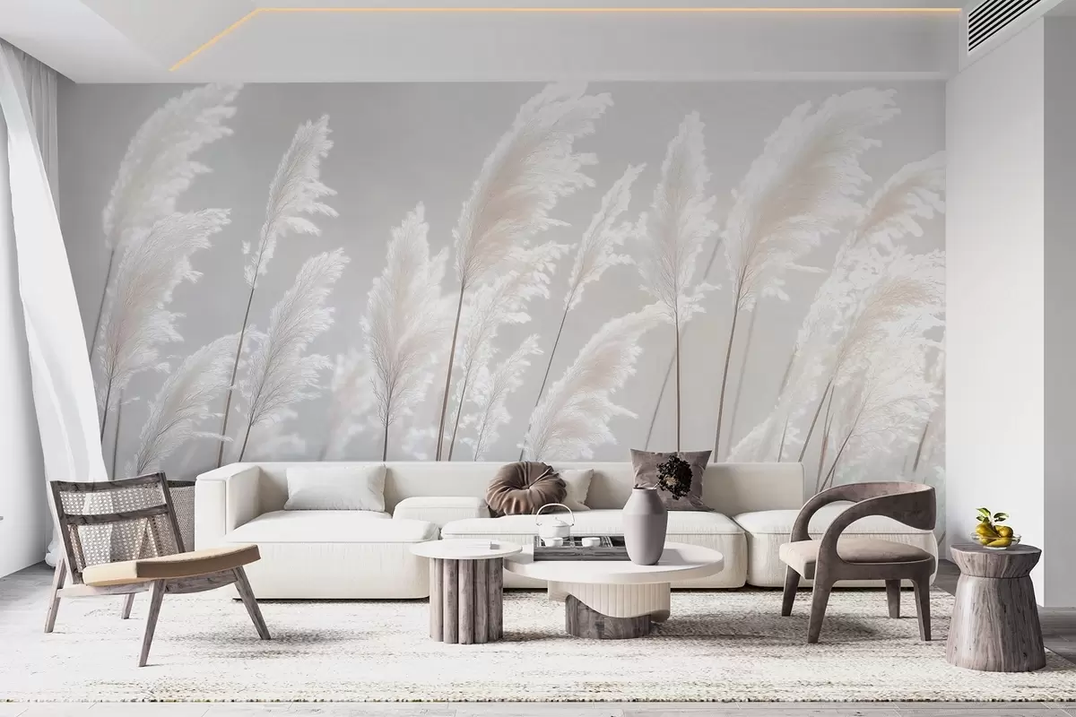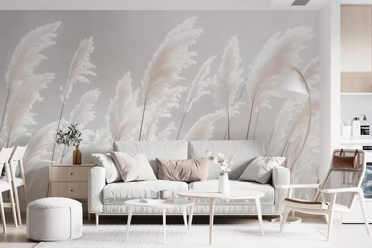 Soft white pampas grass in gentle morning light - Wall mural (No. w09717)