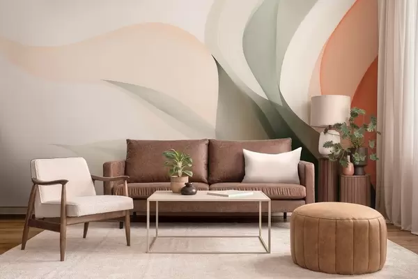 Abstract pastel waves in orange and green tones - Wall mural (No. w09718)