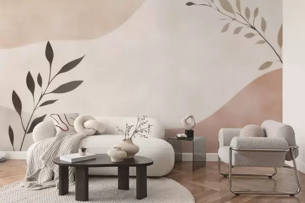 Abstract beige-peach waves with branches - Wall mural (No. w09722)